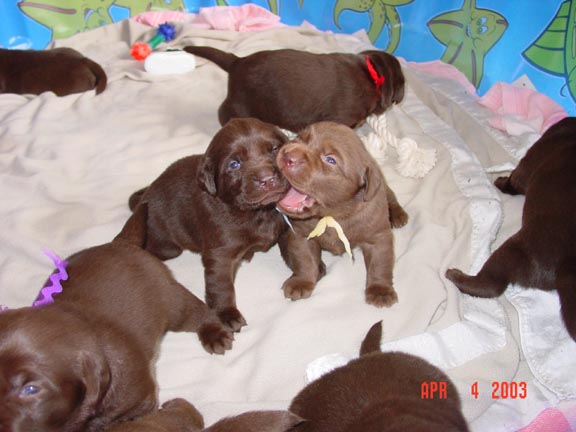 the day. Ouch!! Puppy teeth are coming in!! 04/09/03 -