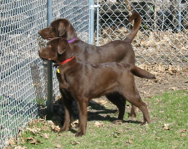 pups are 1 year old!! - CC (Yellow girl) with one of
