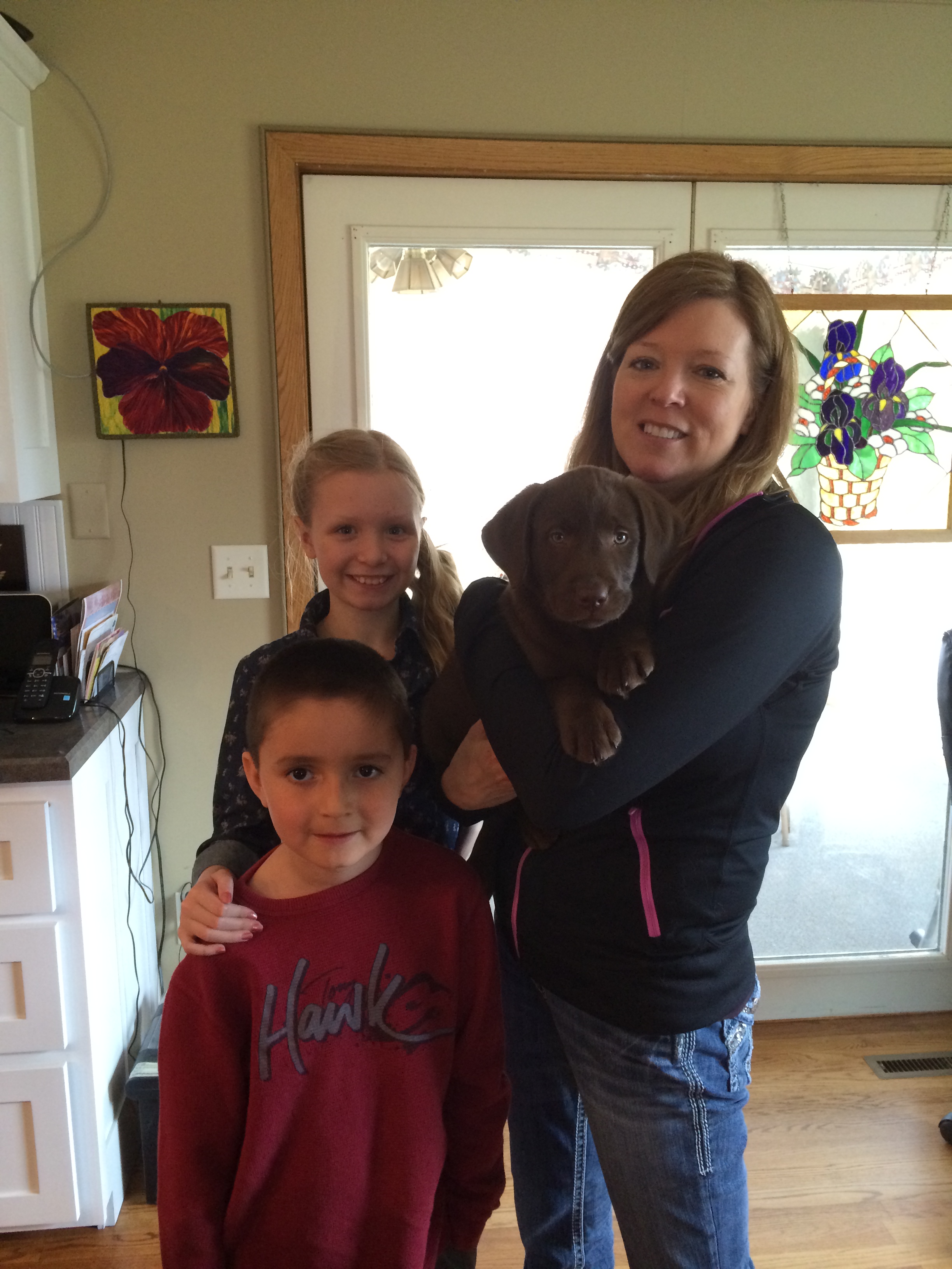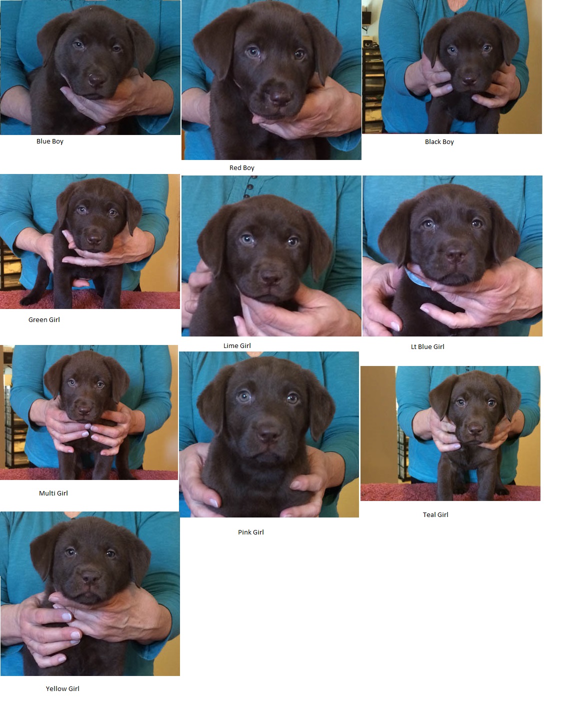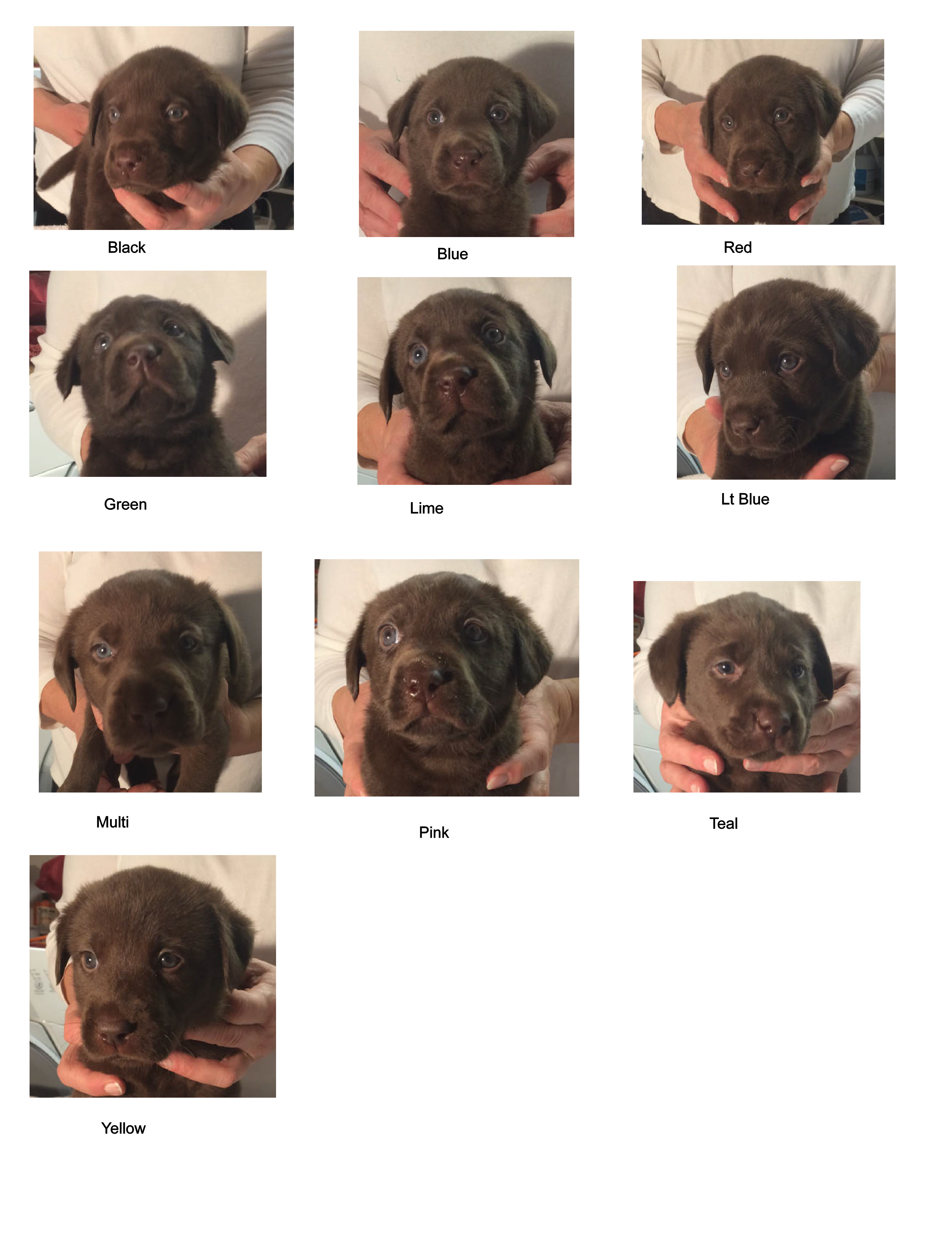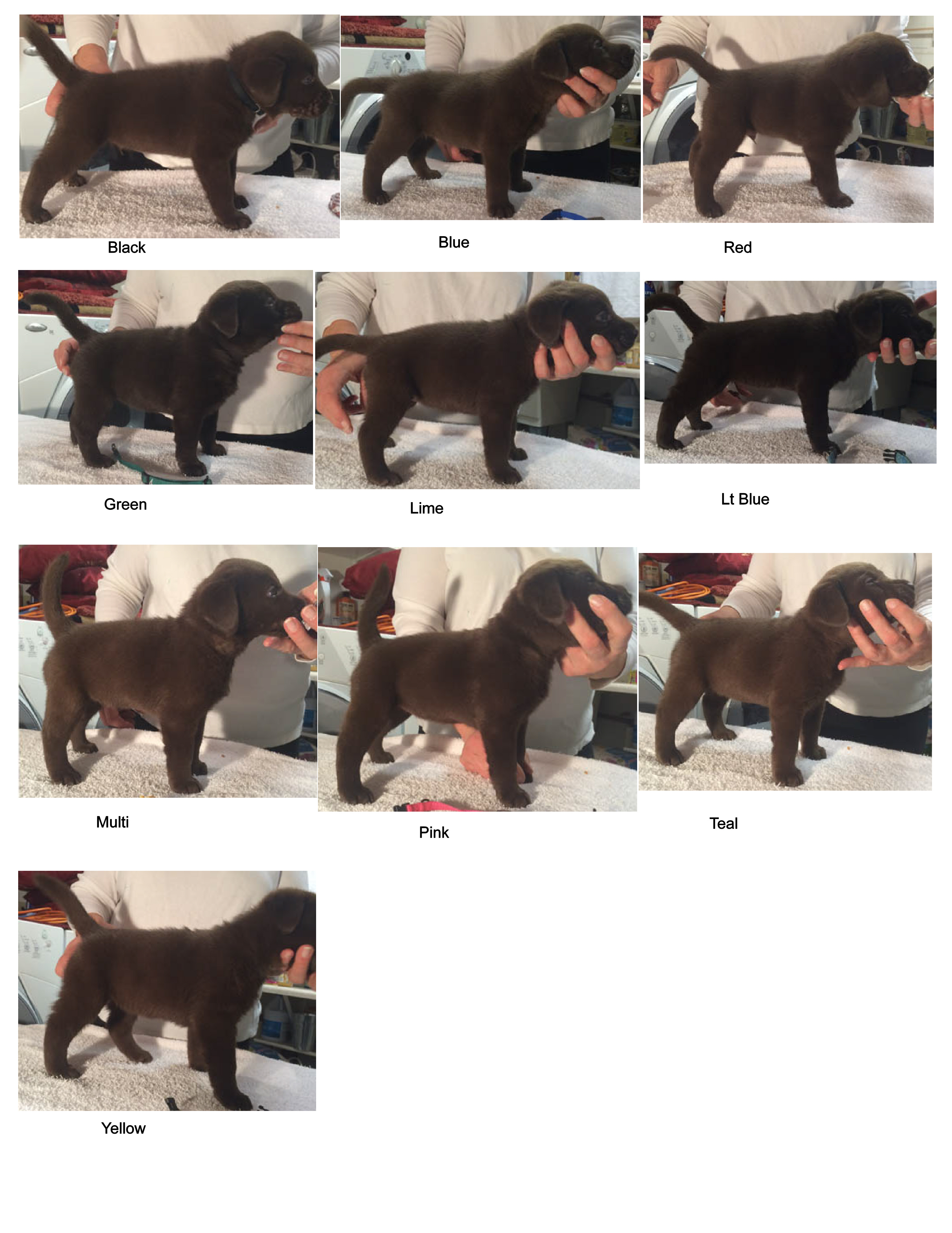 Three more puppies are now with their new families. The Green girl is now Murphy. Murphy and Family . The Lime girl is now Gracie. Gracie and her Family . The Teal girl is now Ruby. Ruby and her Family .