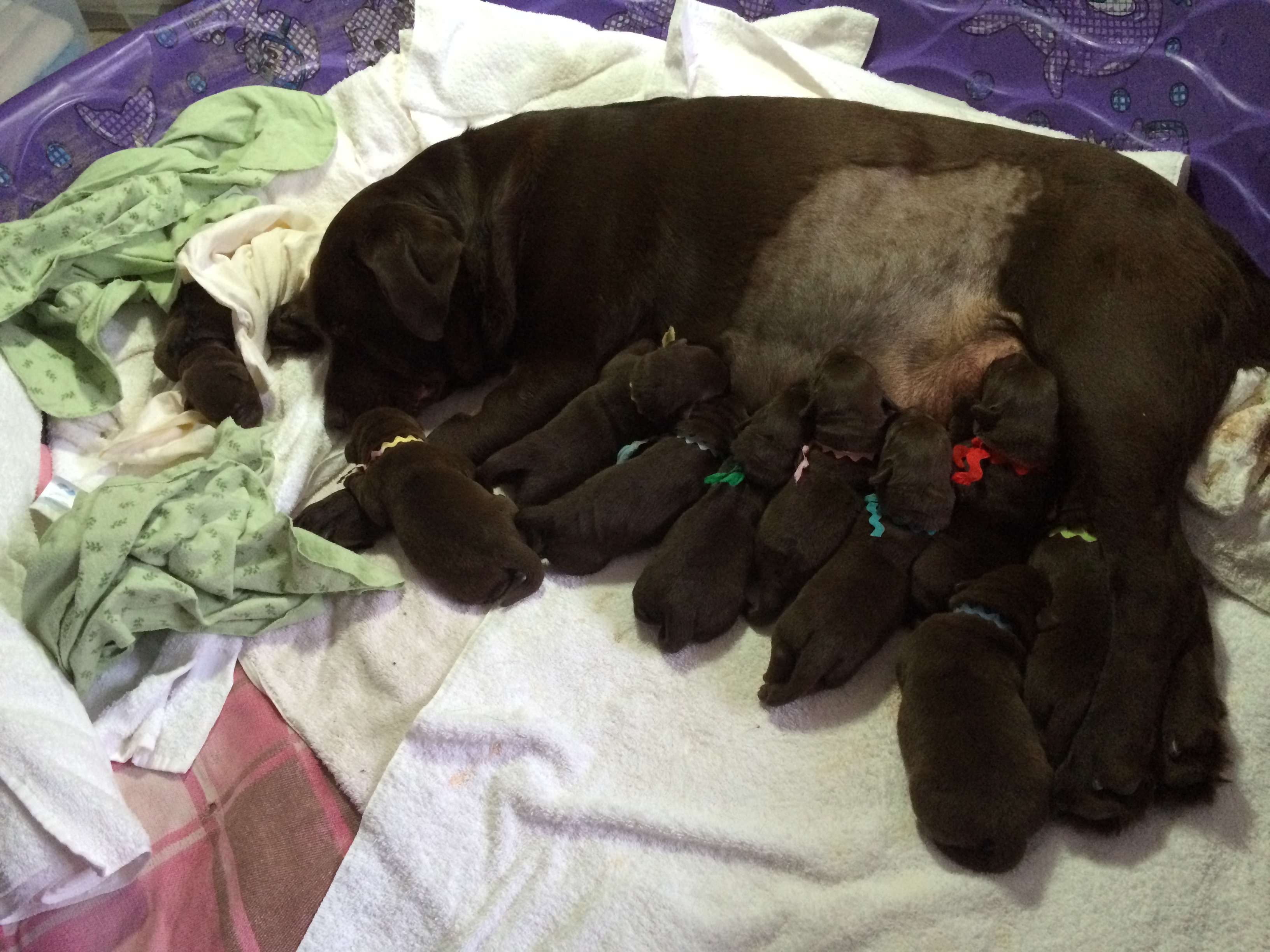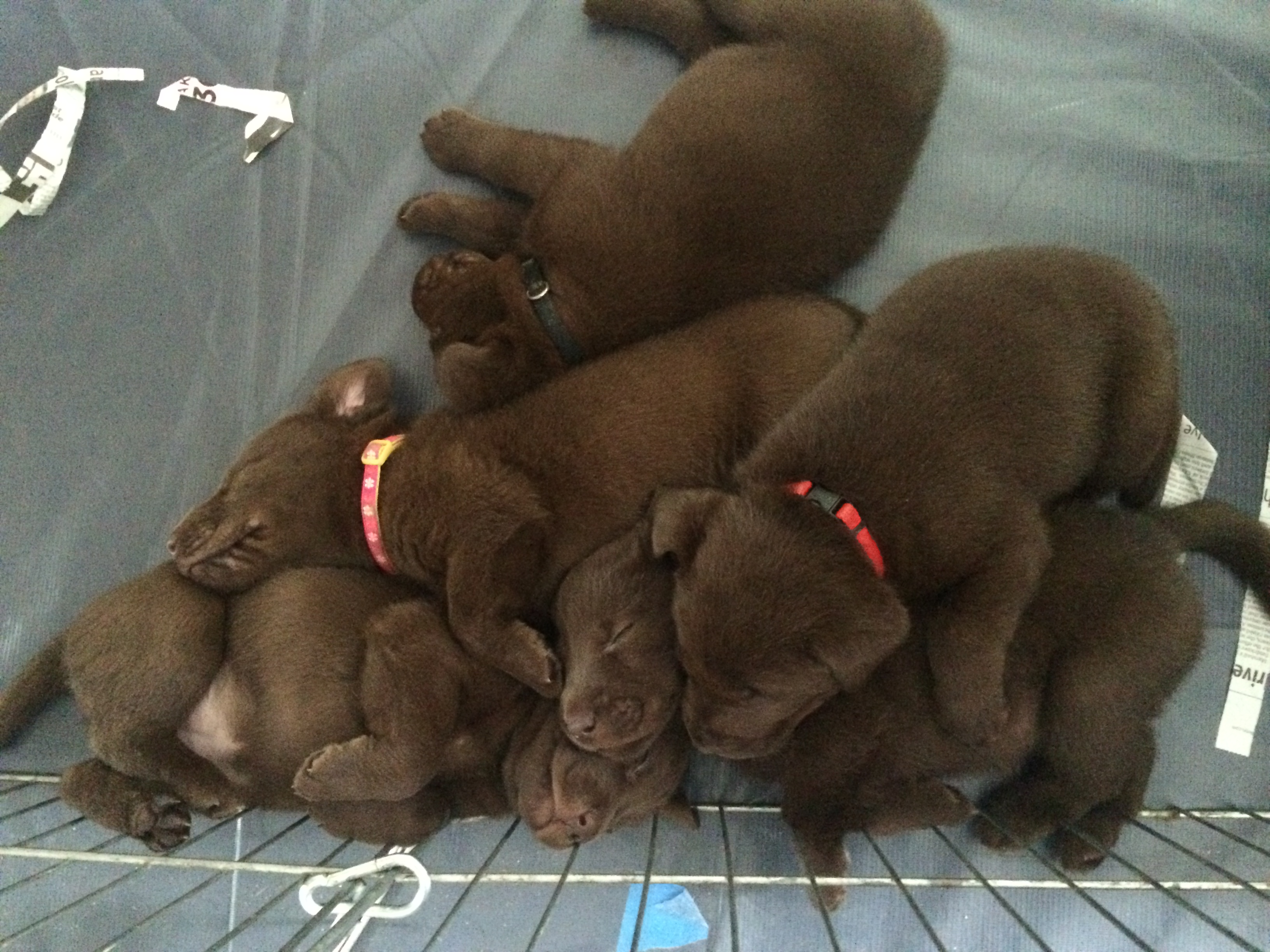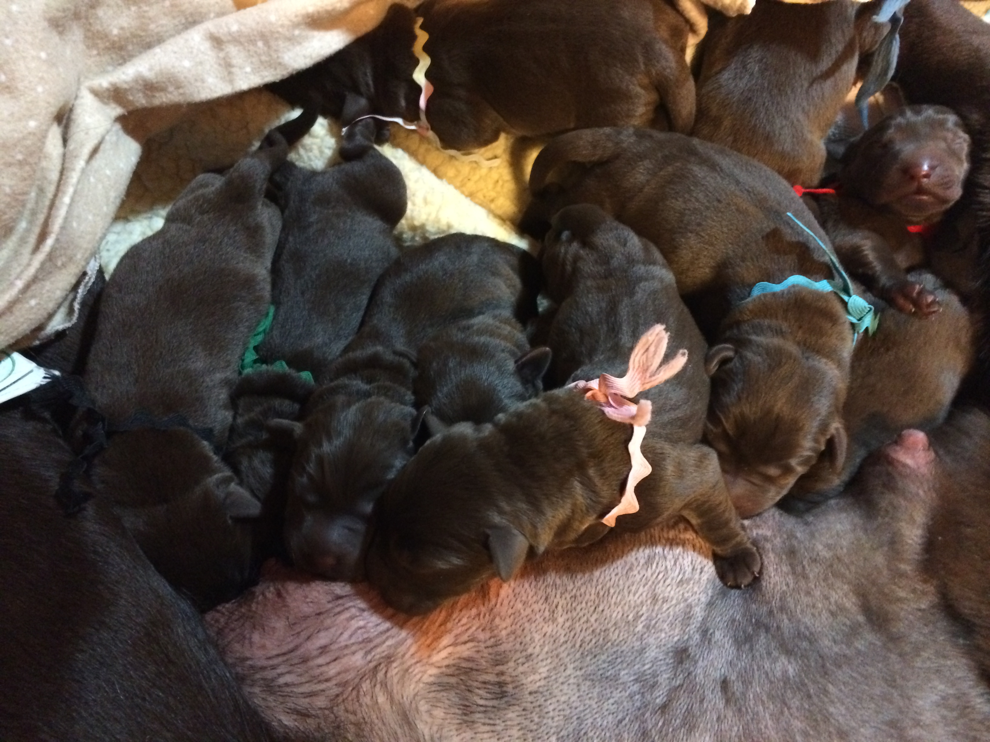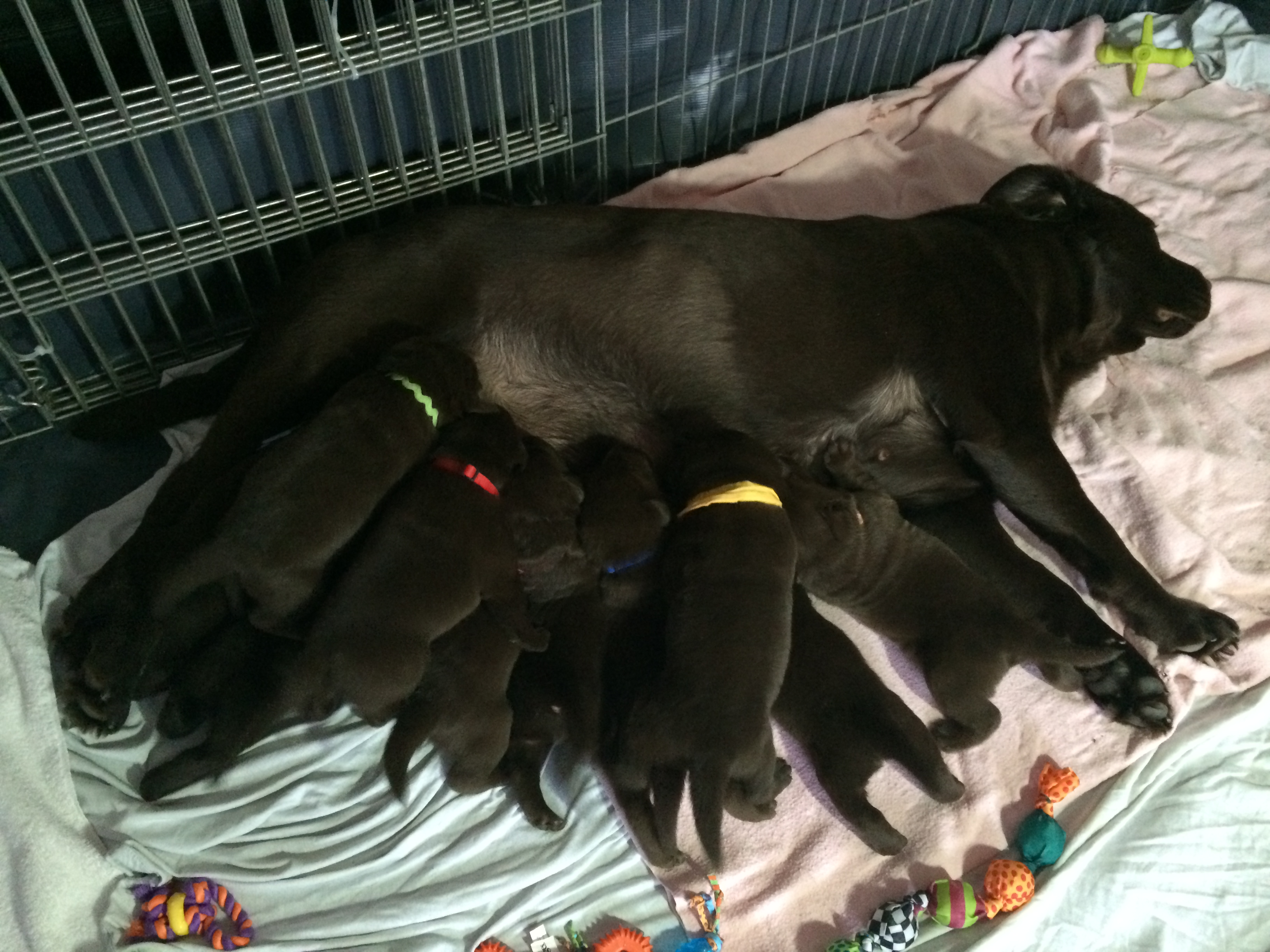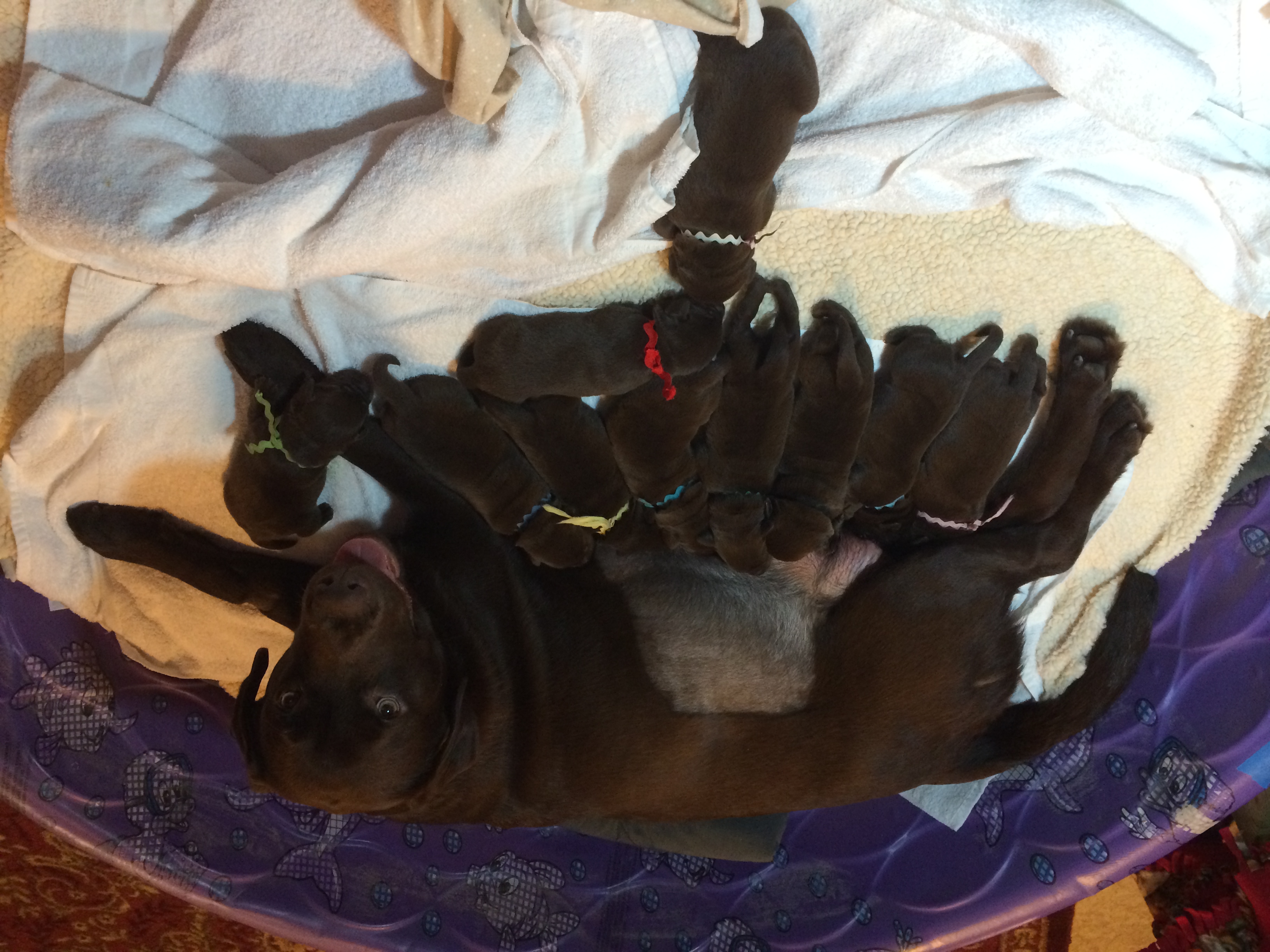 Happy Valentines Day. The chocolates are doing great, eating constantly and some have even put on a couple of ounces. Their dew claws will be removed this afternoon. Trippy is doing well, loving the extra food with yogurt and anything thing else she wants or needs.