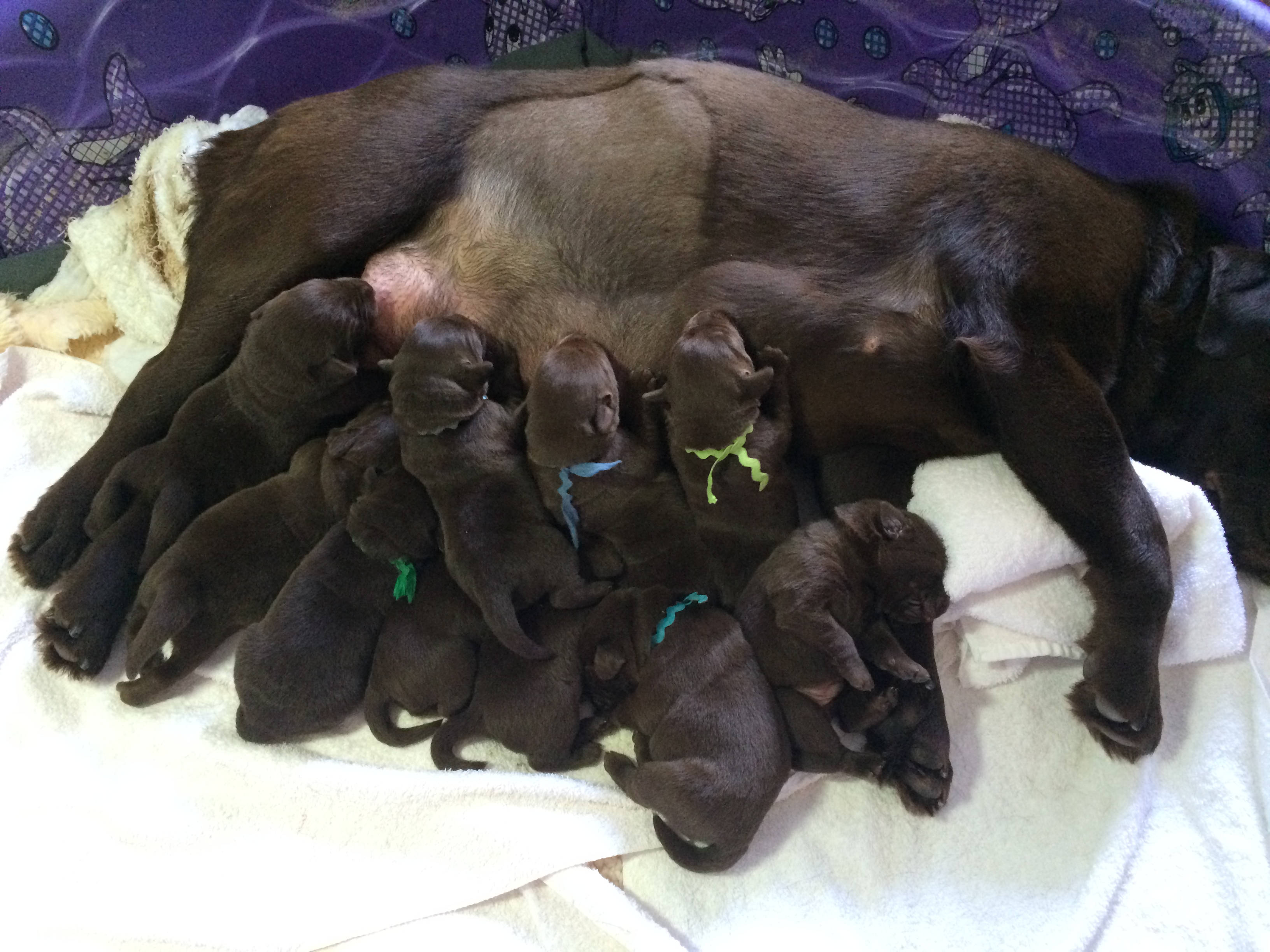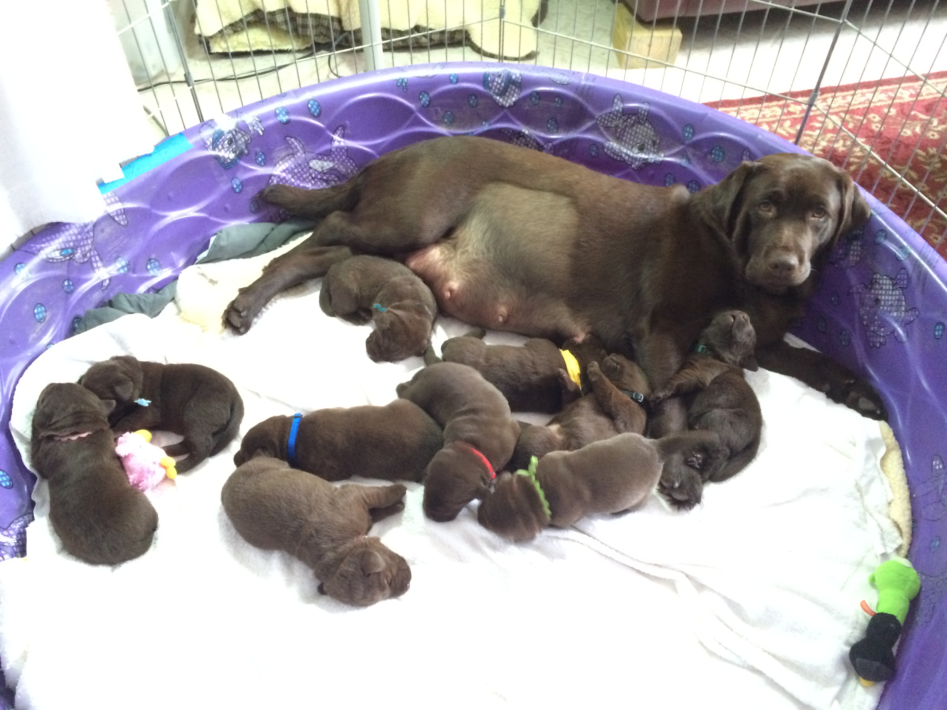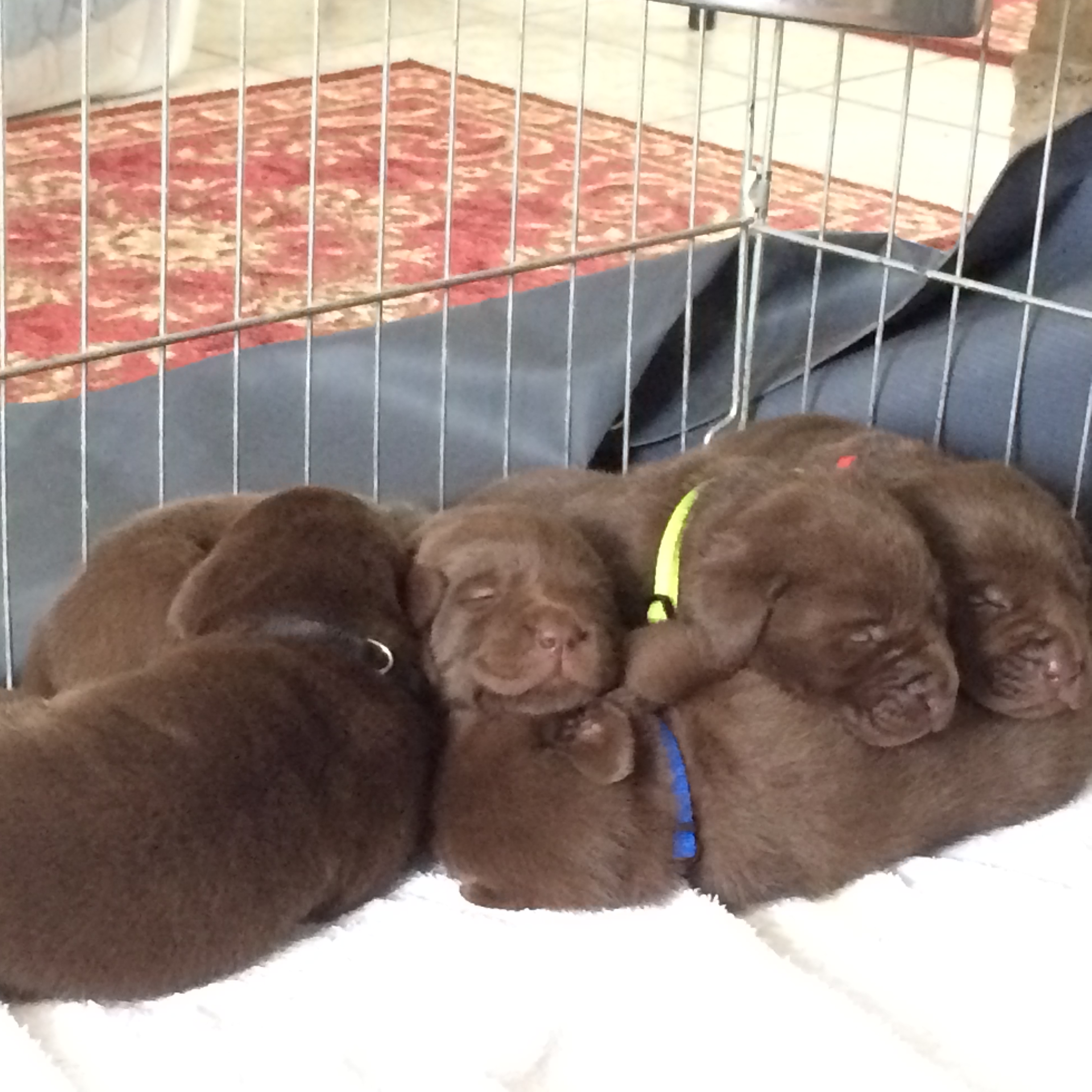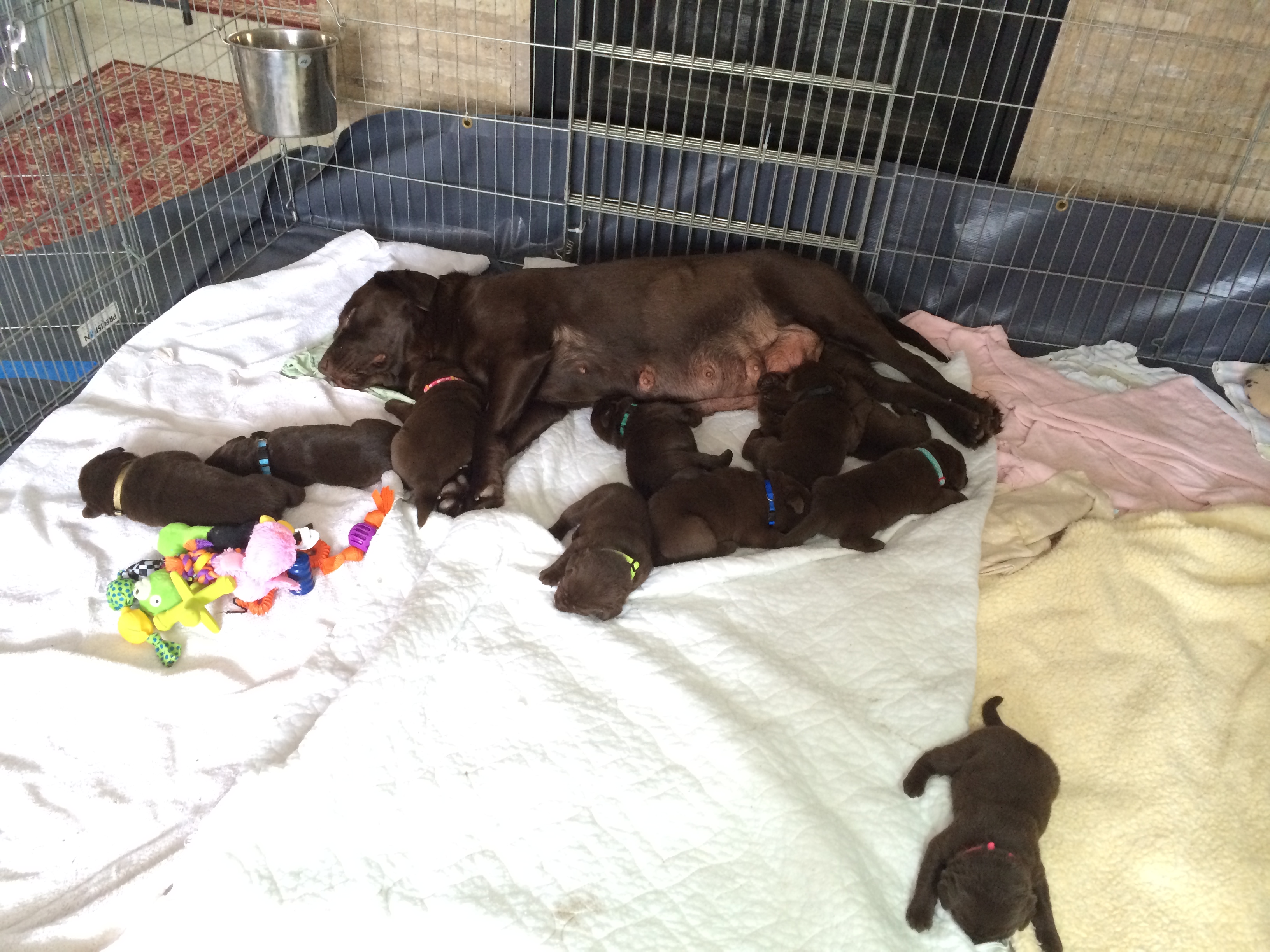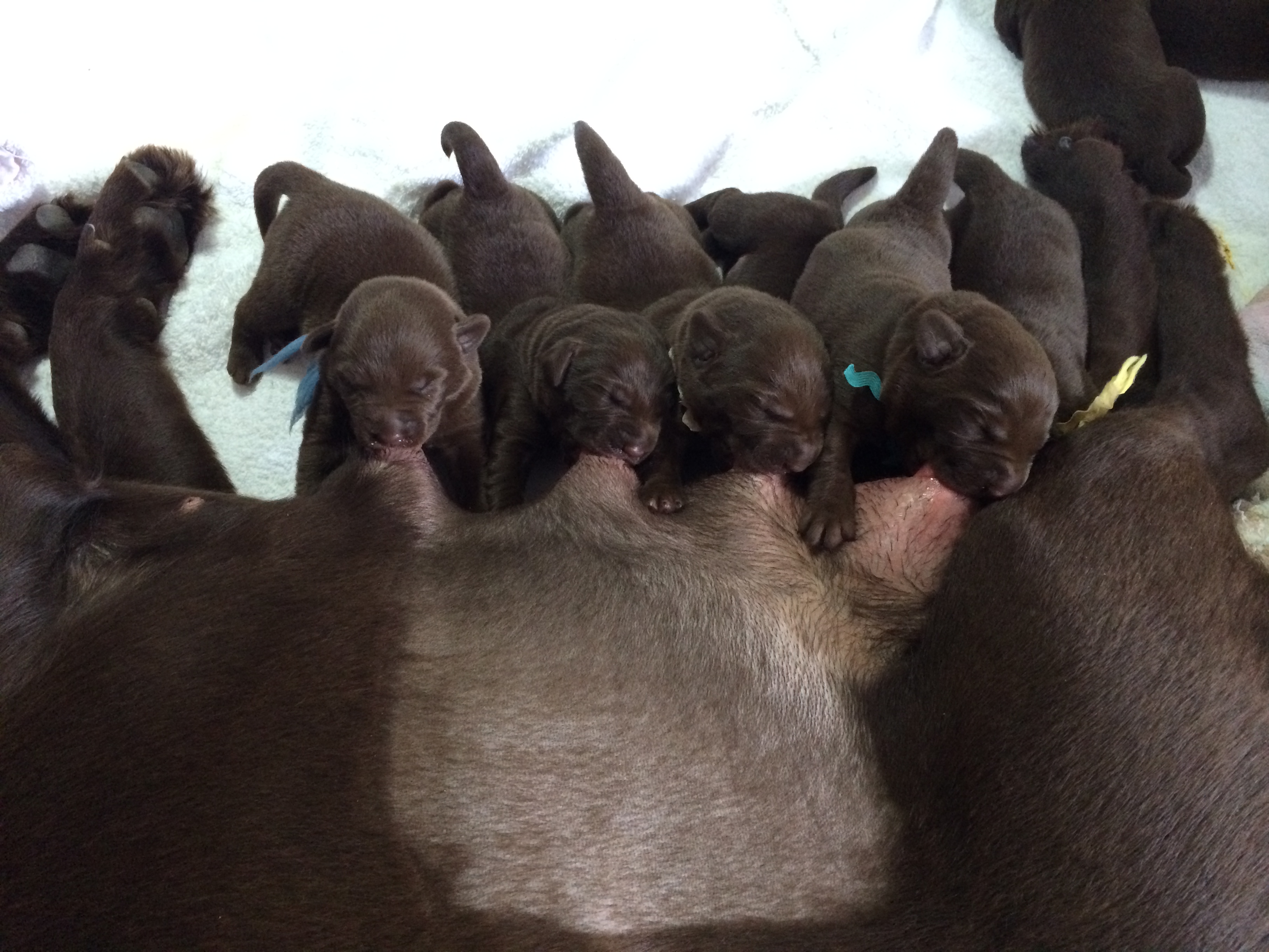 Happy Valentines Day. The chocolates are doing great, eating constantly and some have even put on a couple of ounces. Their dew claws will be removed this afternoon. Trippy is doing well, loving the extra food with yogurt and anything thing else she wants or needs.