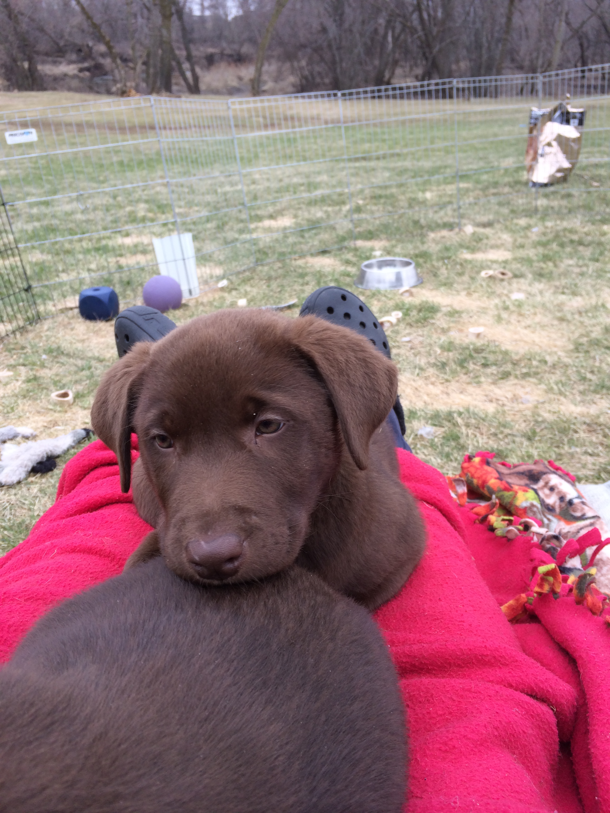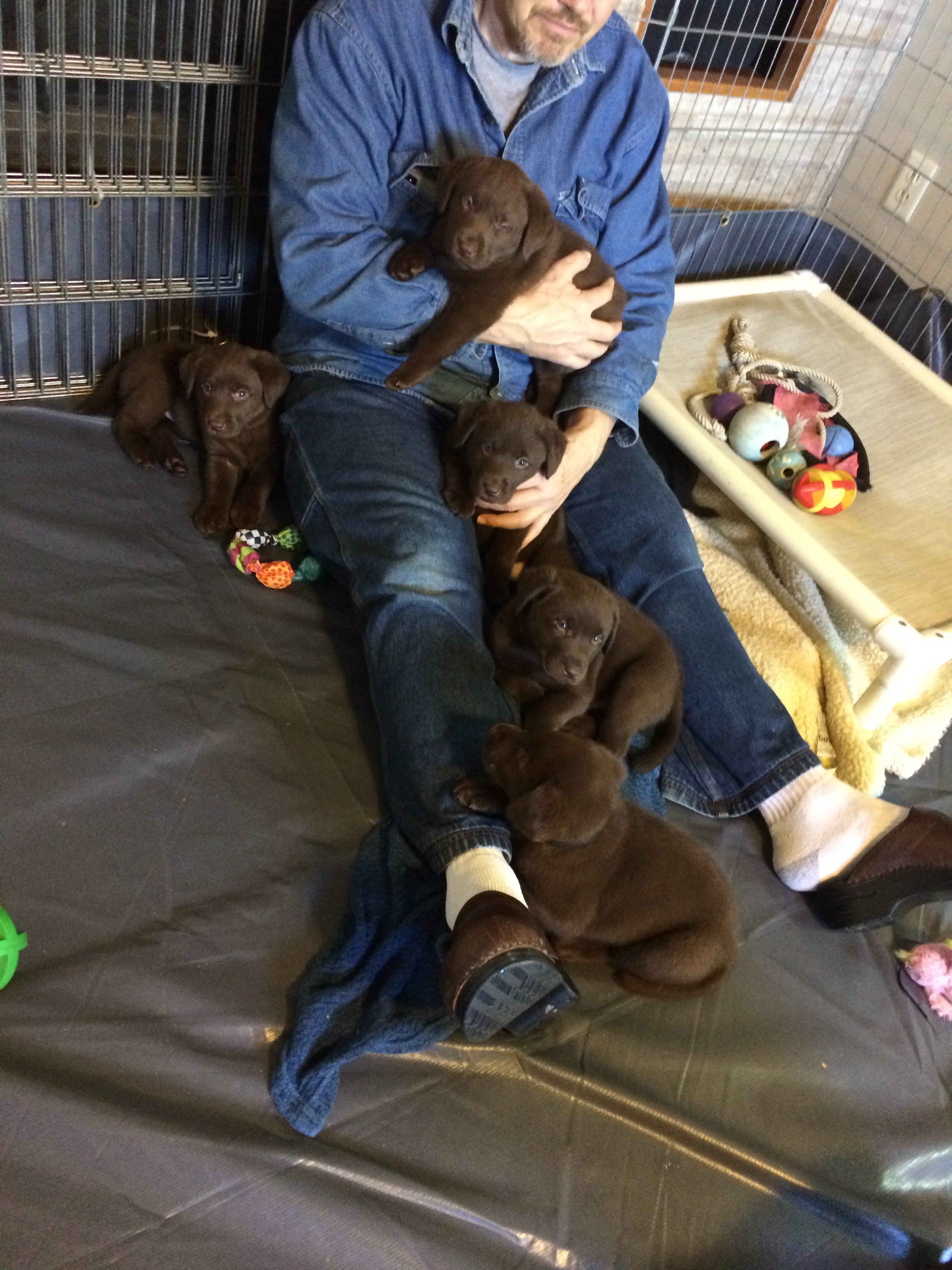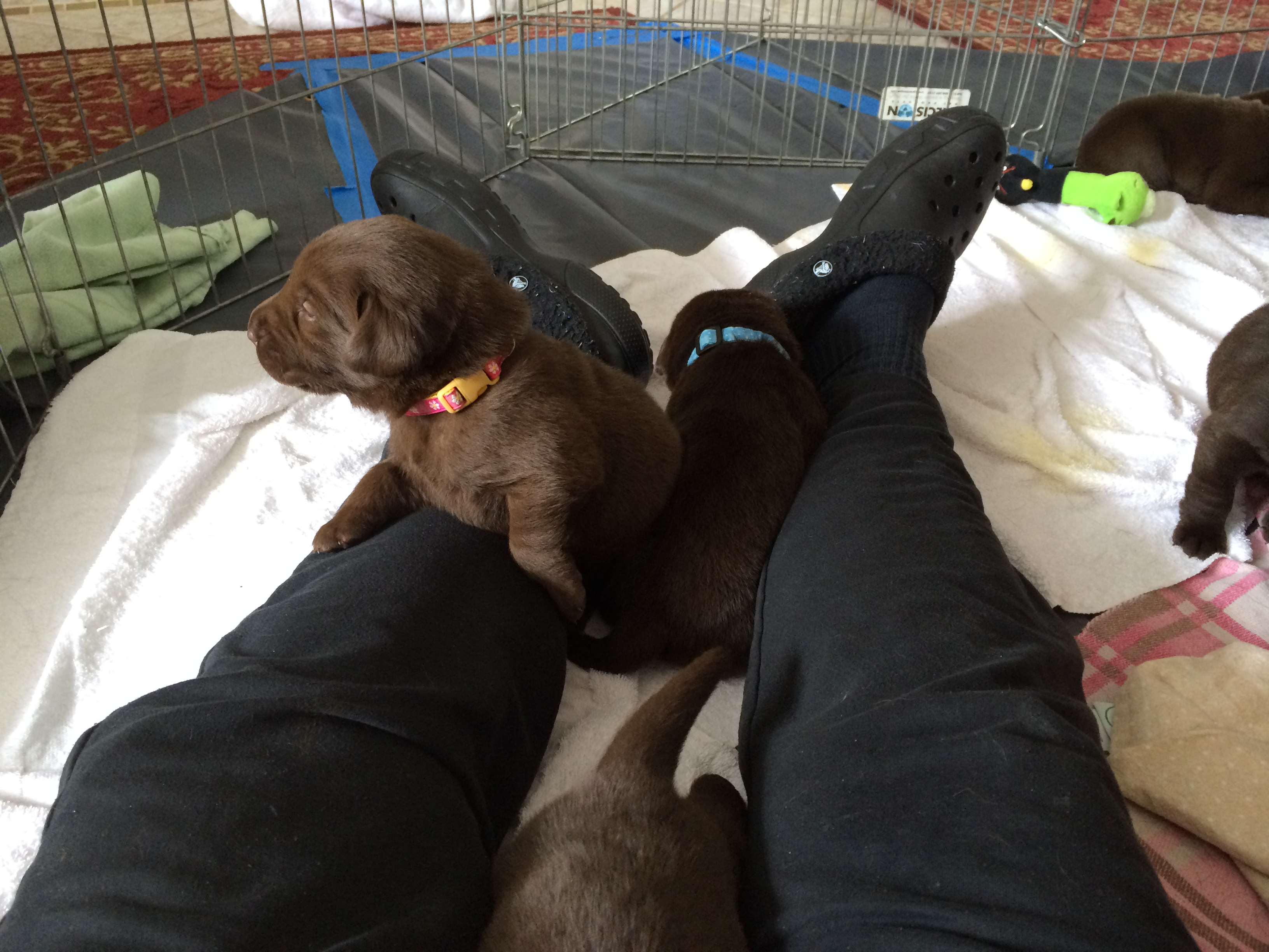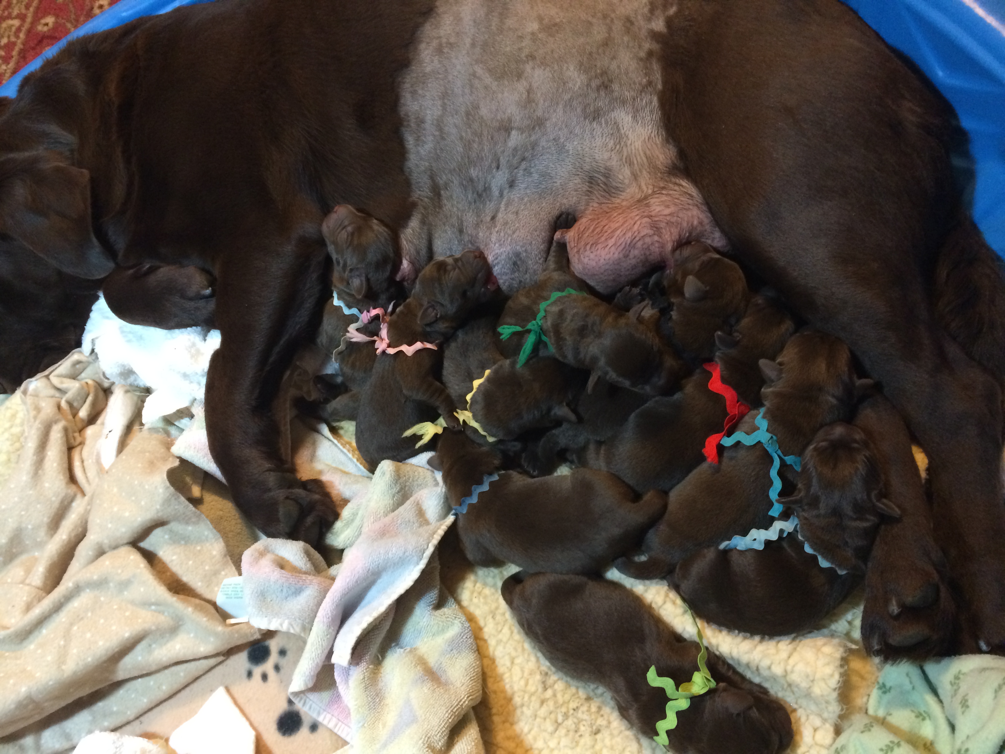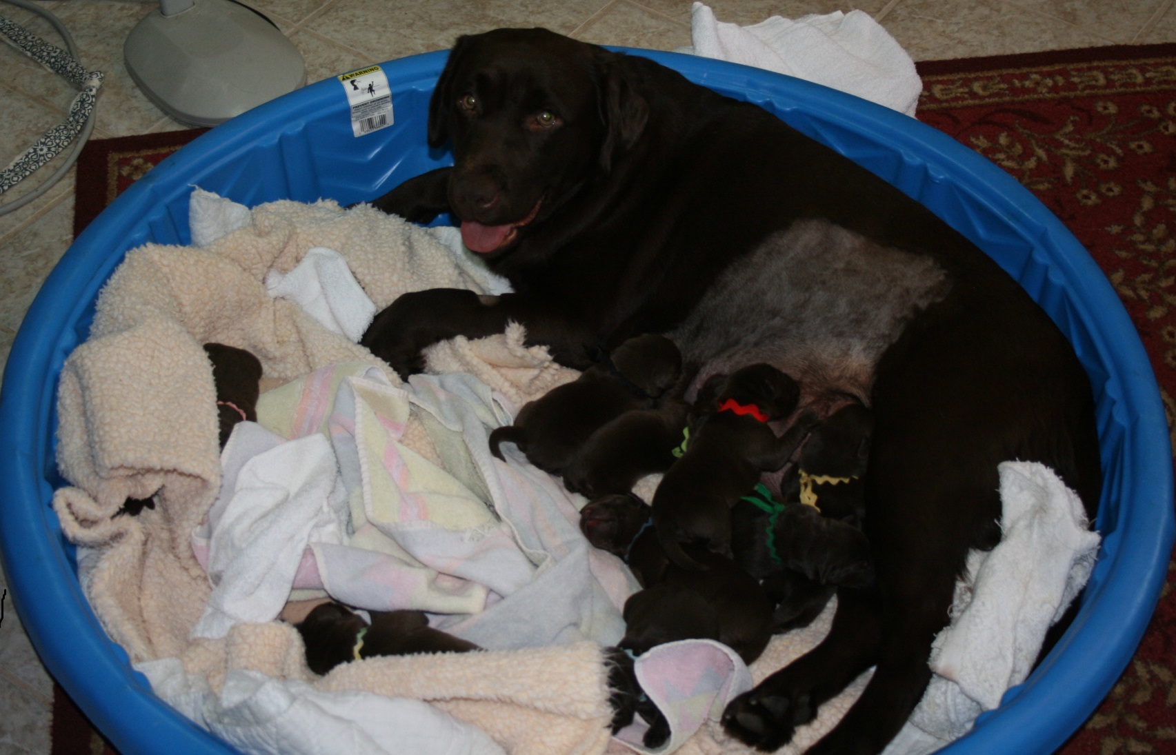 Happy Valentines Day. The chocolates are doing great, eating constantly and some have even put on a couple of ounces. Their dew claws will be removed this afternoon. Trippy is doing well, loving the extra food with yogurt and anything thing else she wants or needs.