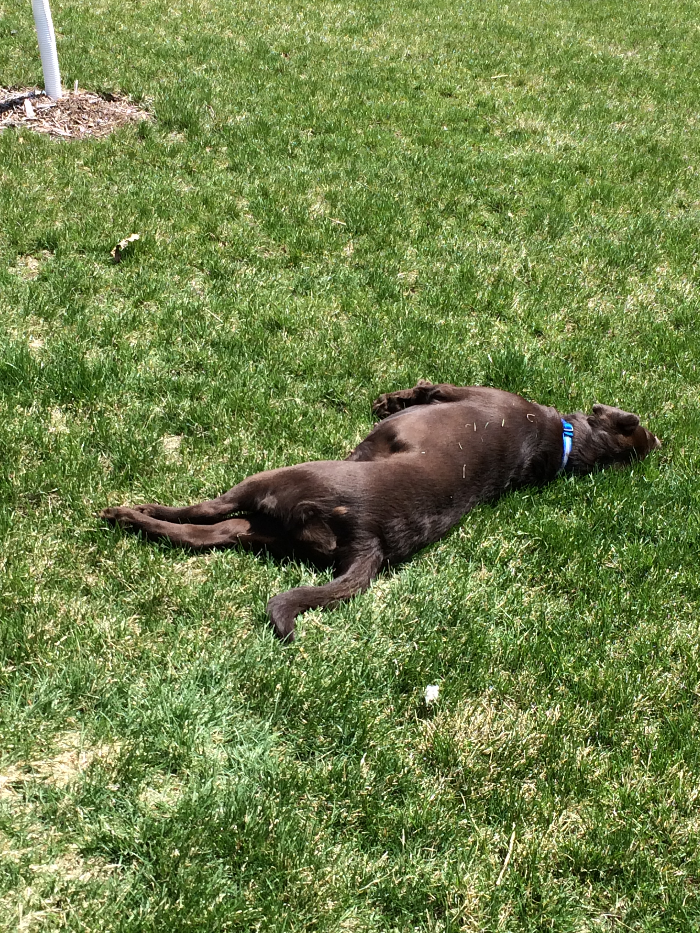 Finally some warm weather and the snow is gone. The pups were outside with marrow bones for nearly 2 hours. I even added another panel of fencing so the pups have even more room to run. I think they were having a great time outside. Outside I , Outside II , Outside III , Outside IV , All Tired out .