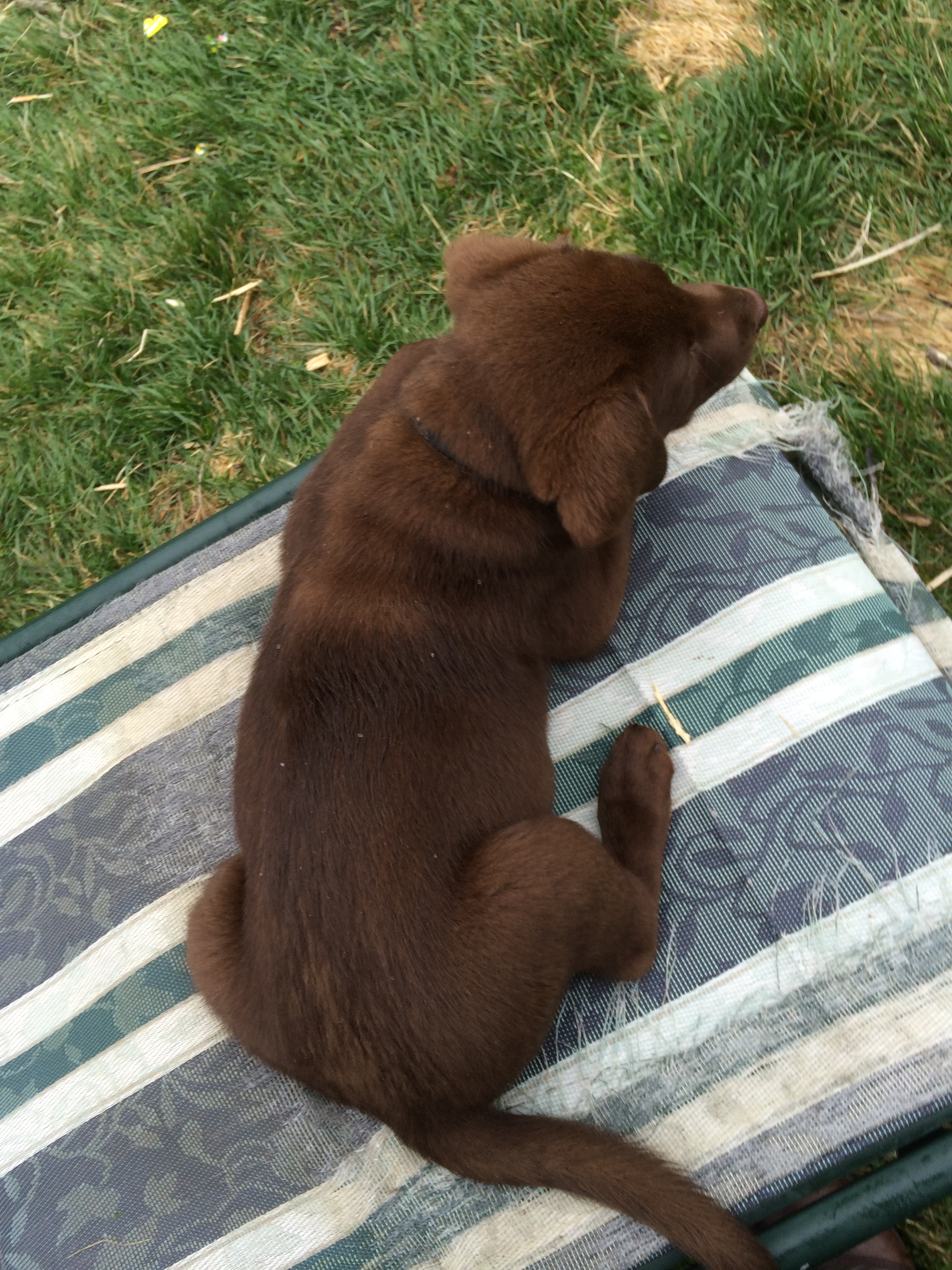It was 2am when the pups threw a fit and needed a few kernels of food to tide them over until morning. Tug toy , Hiding from the sun .