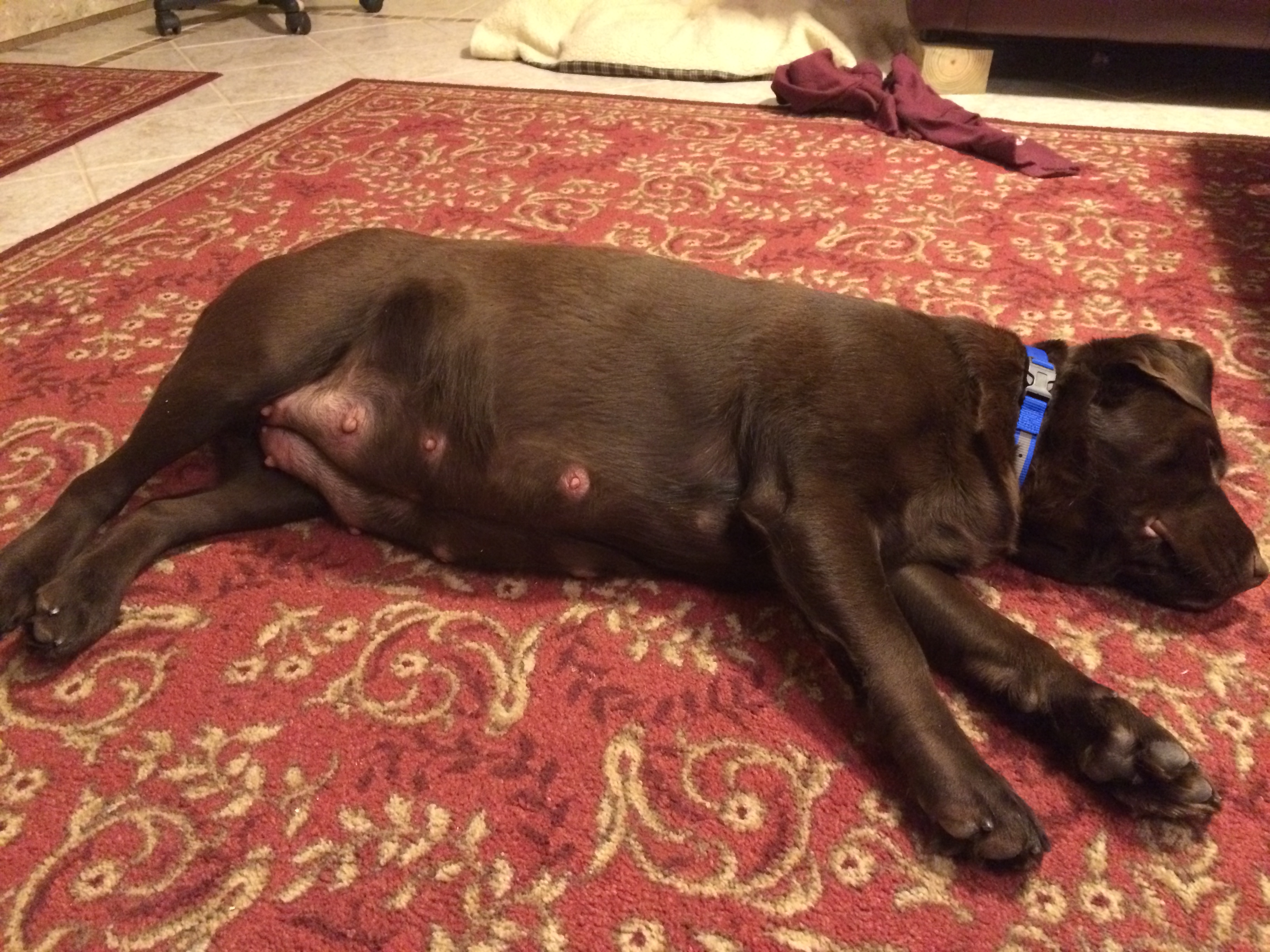 Trippy is pregnant. The Dr estimates 9 pups. 4 more weeks to go until her due date. |