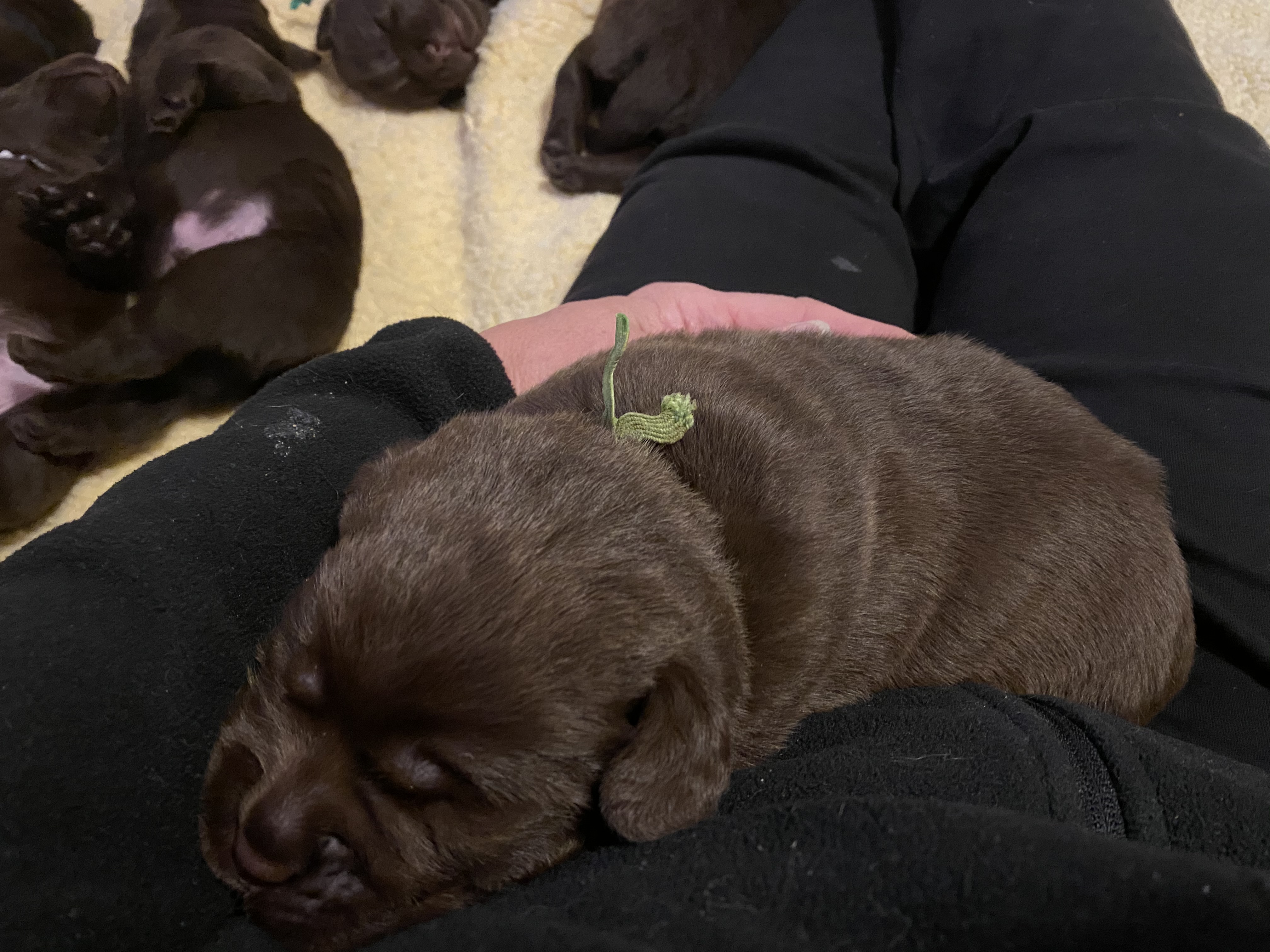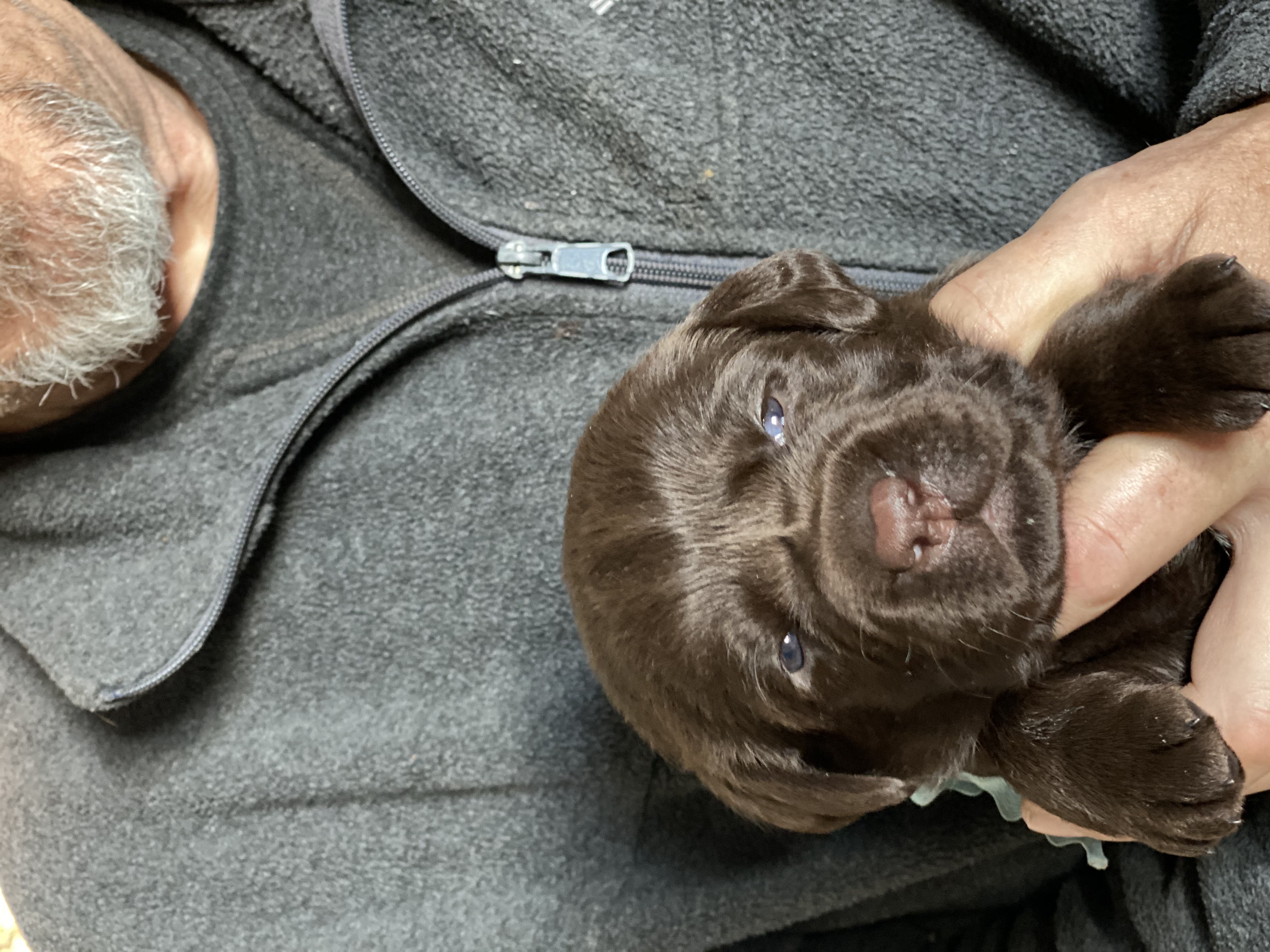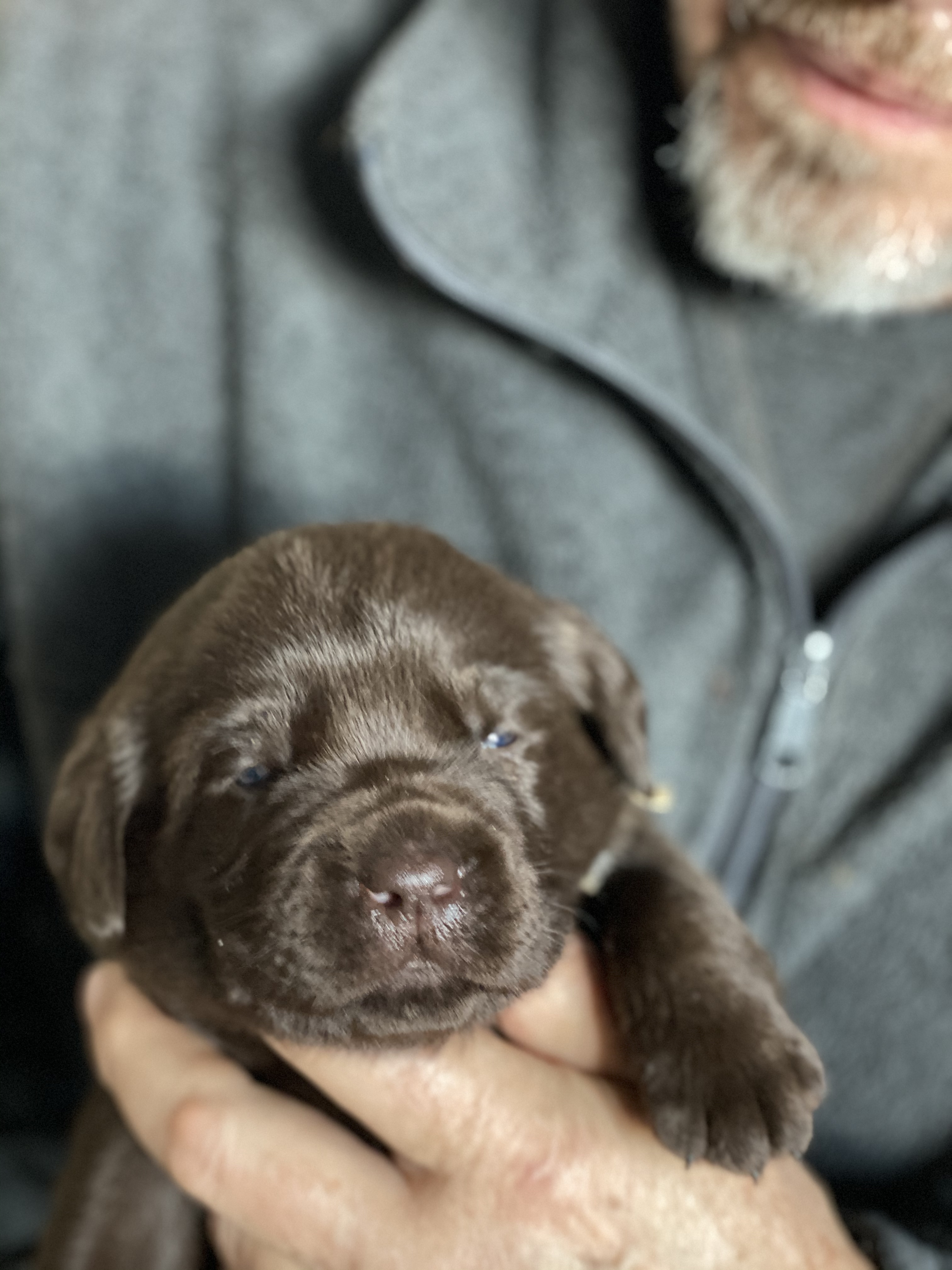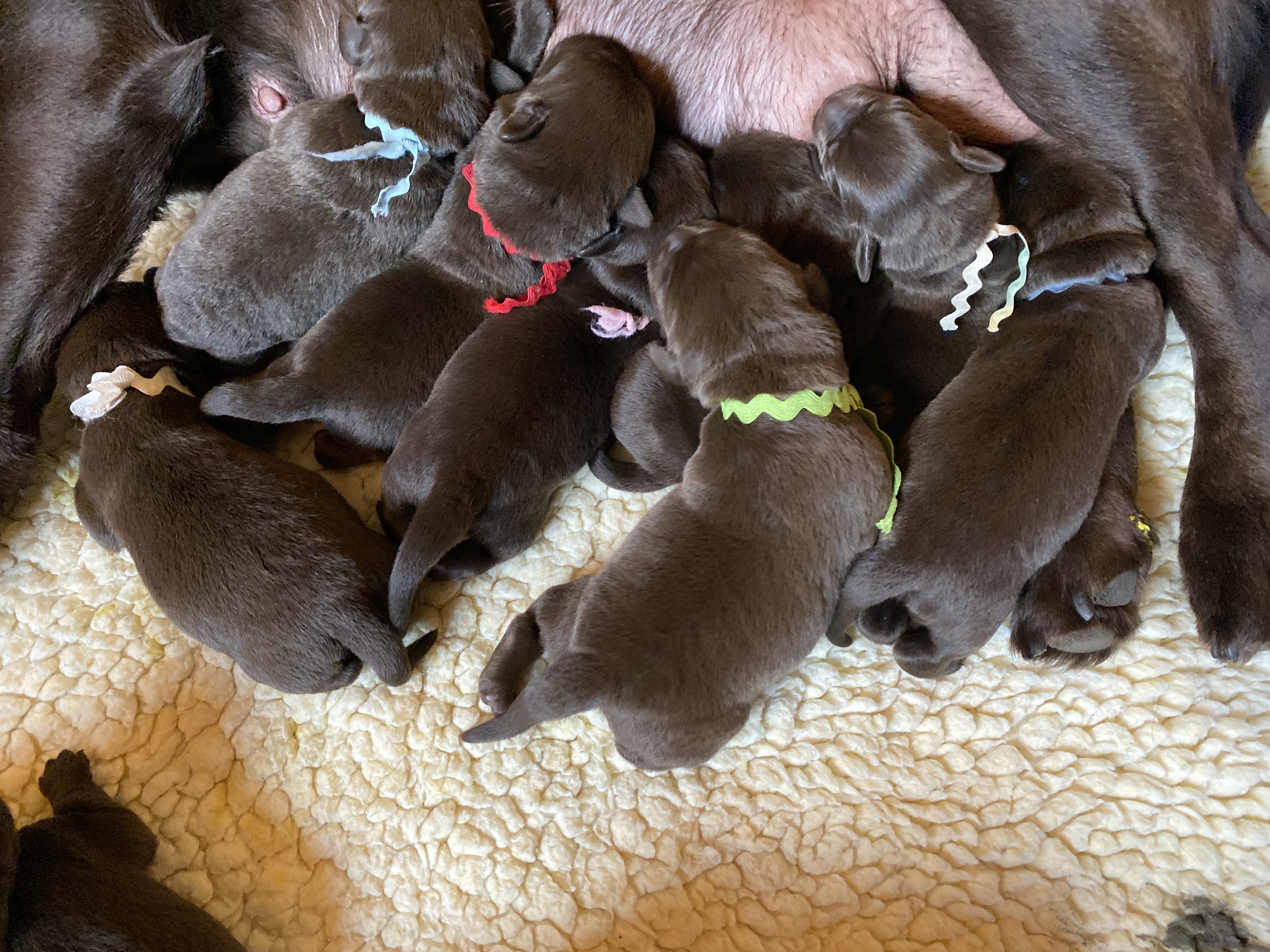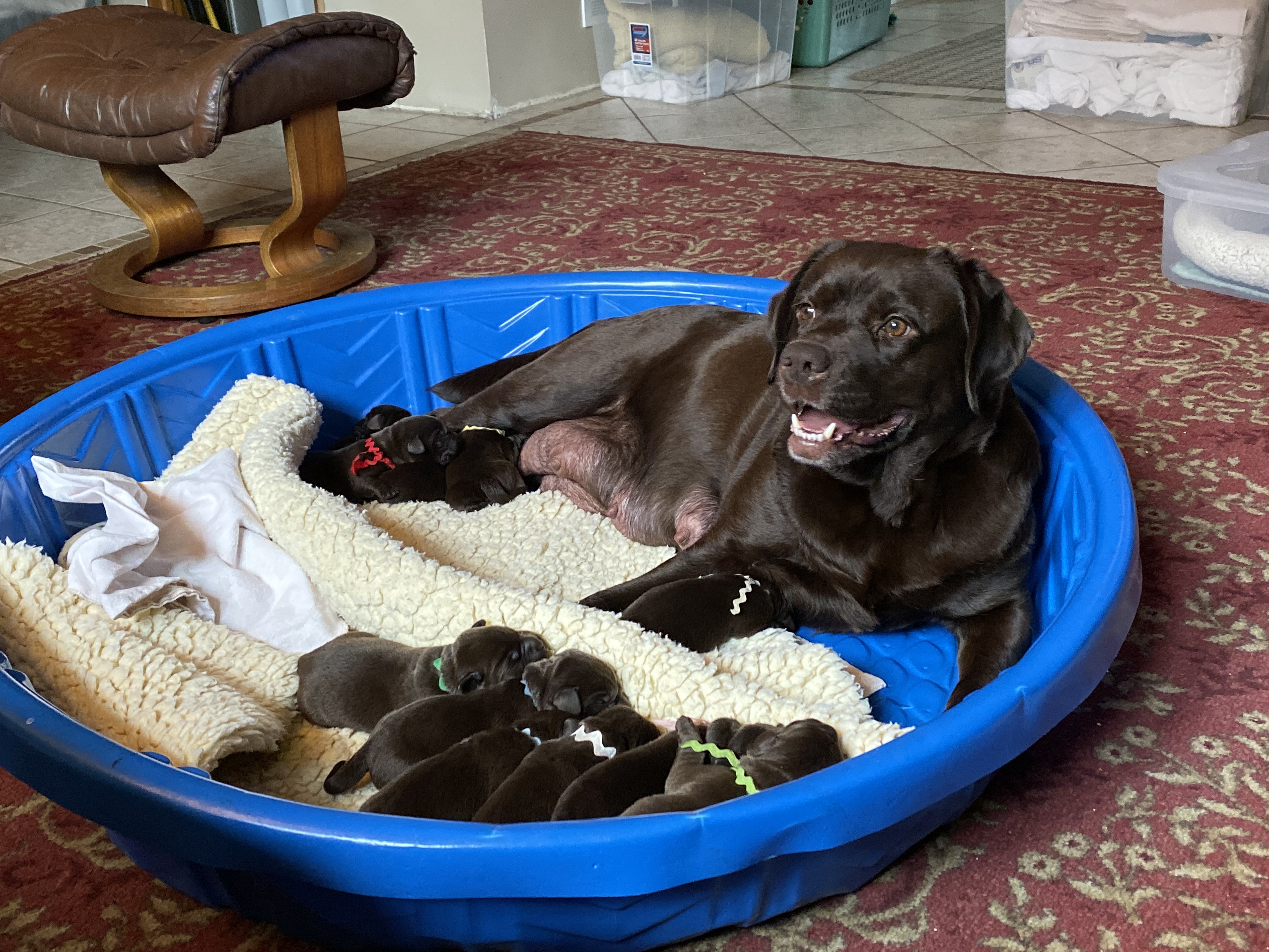 The litter will be all chocolate puppies. Ultrasound is the second week of October and the litter will be due November 13 +/- 2 days.