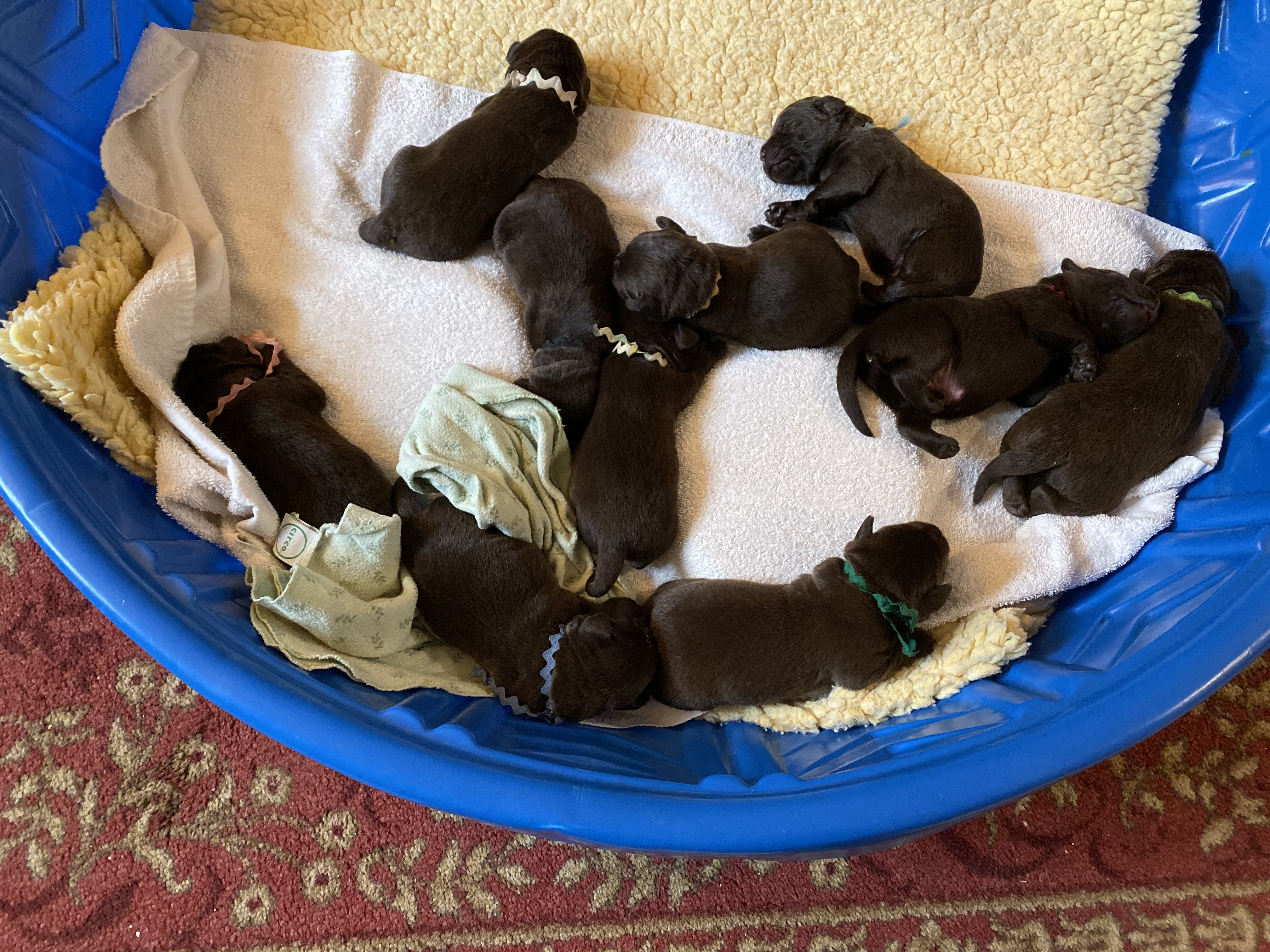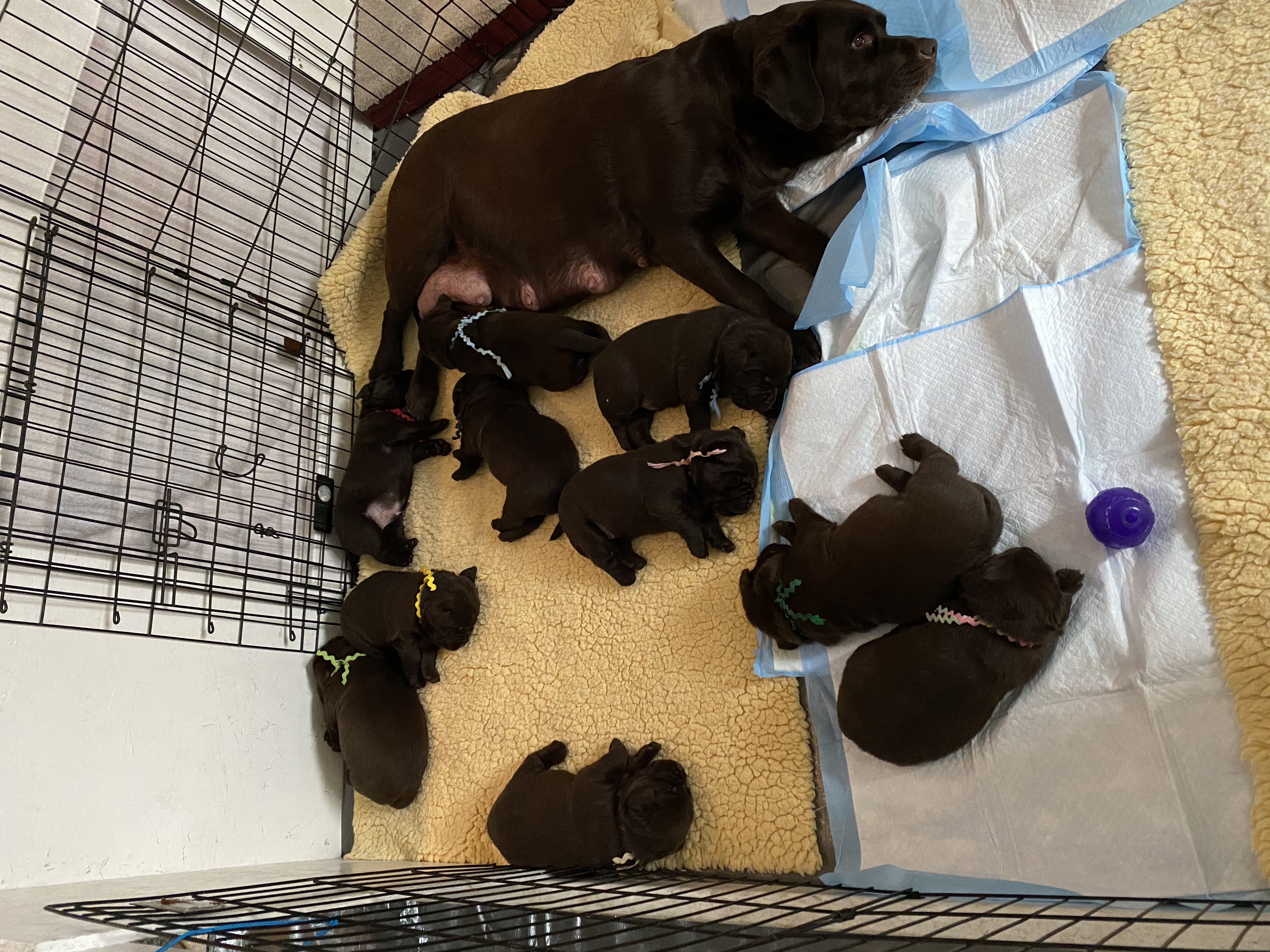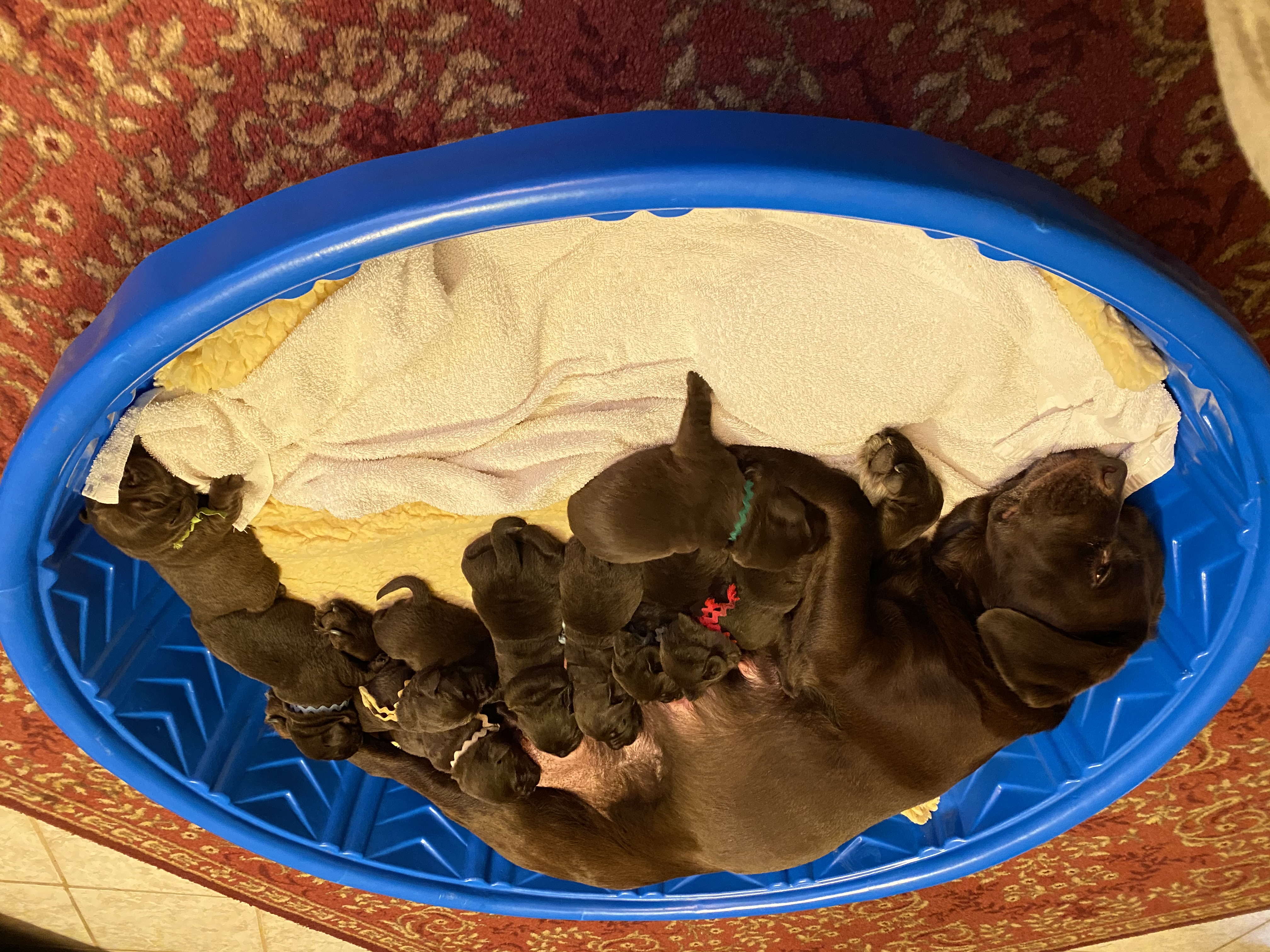 She delivered 11 pups, 6 males, 4 females and one tiny female that was stillborn.