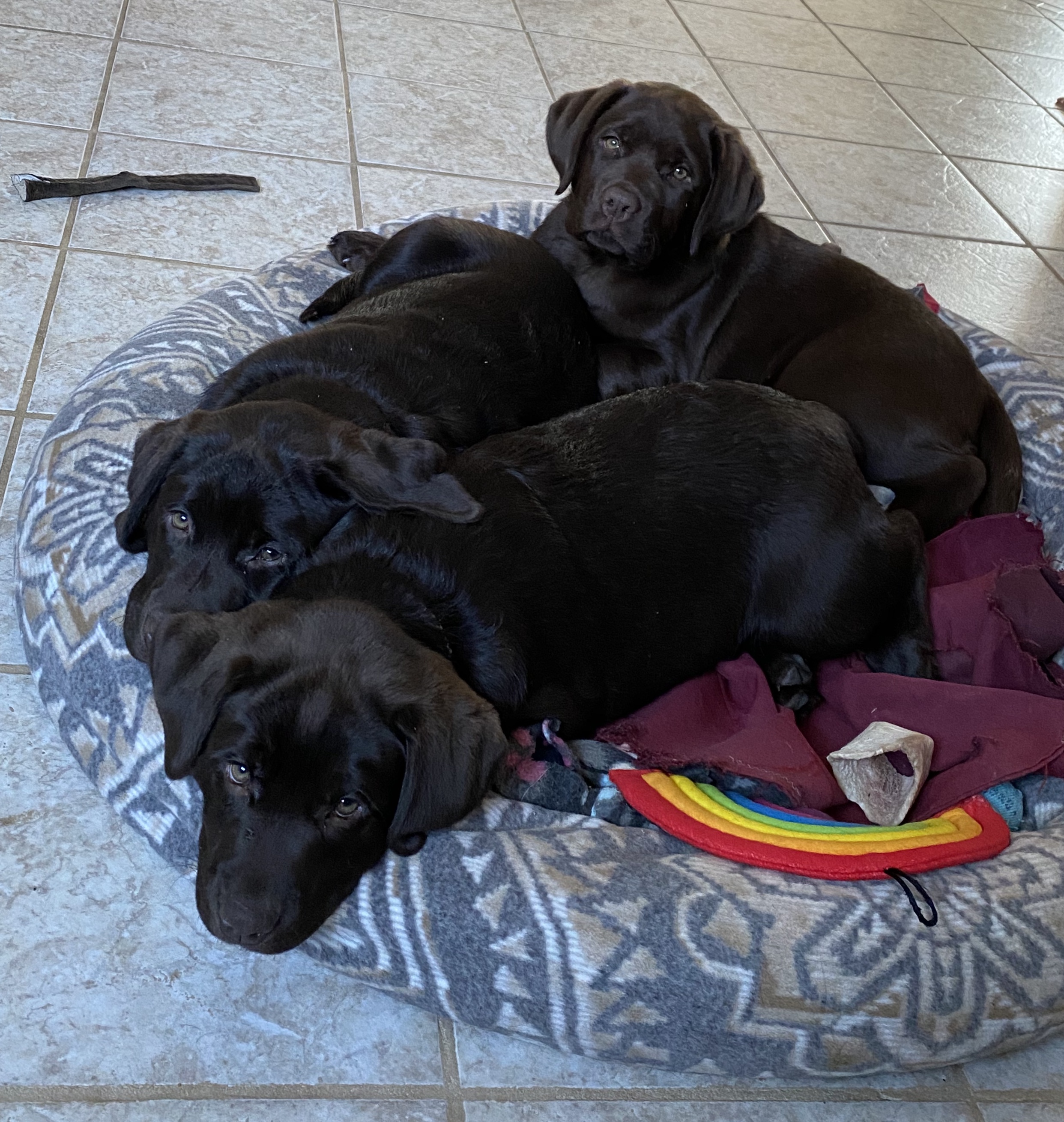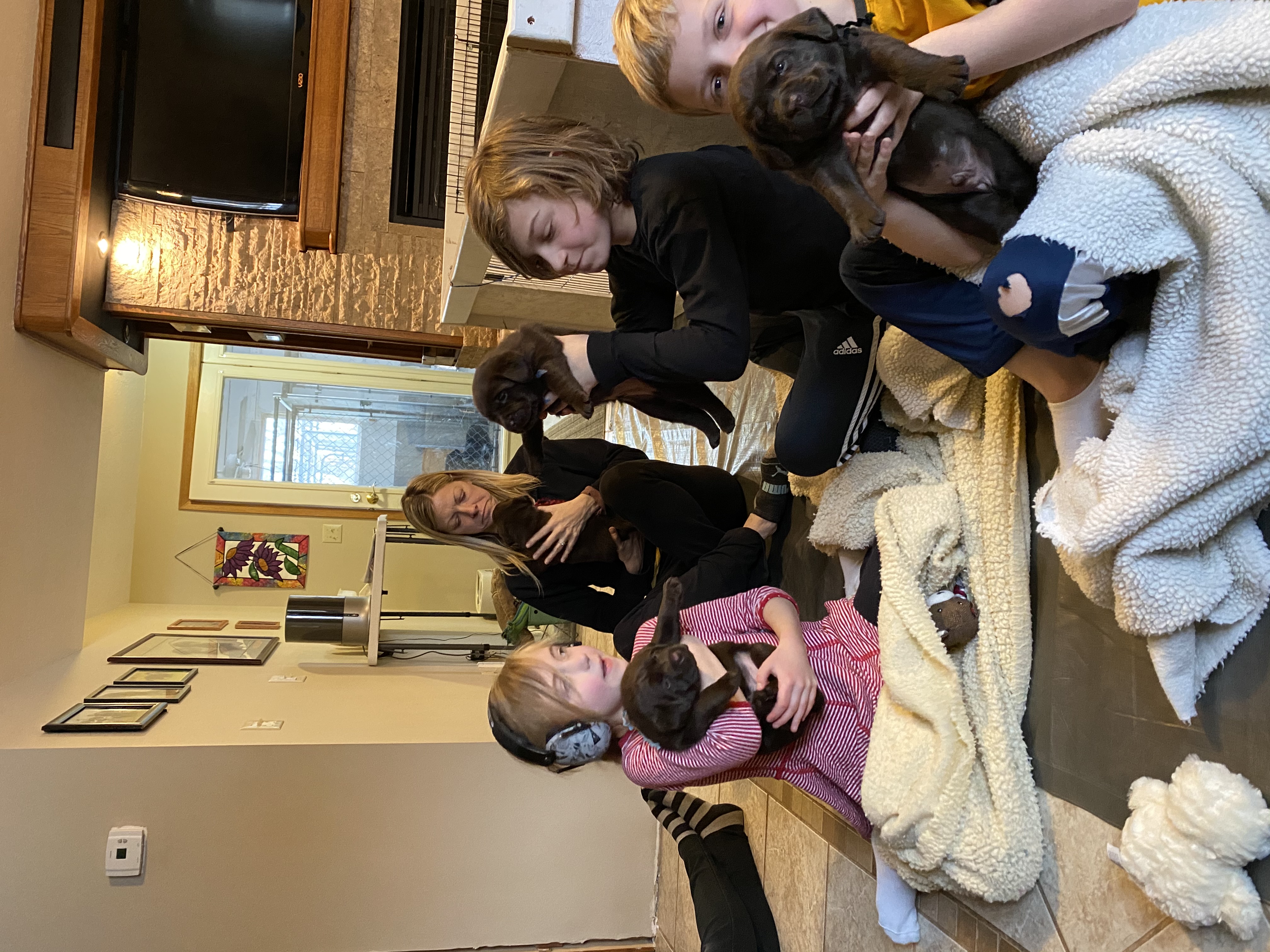 Cold outside with a wind. Pups played but didn't stay out long.