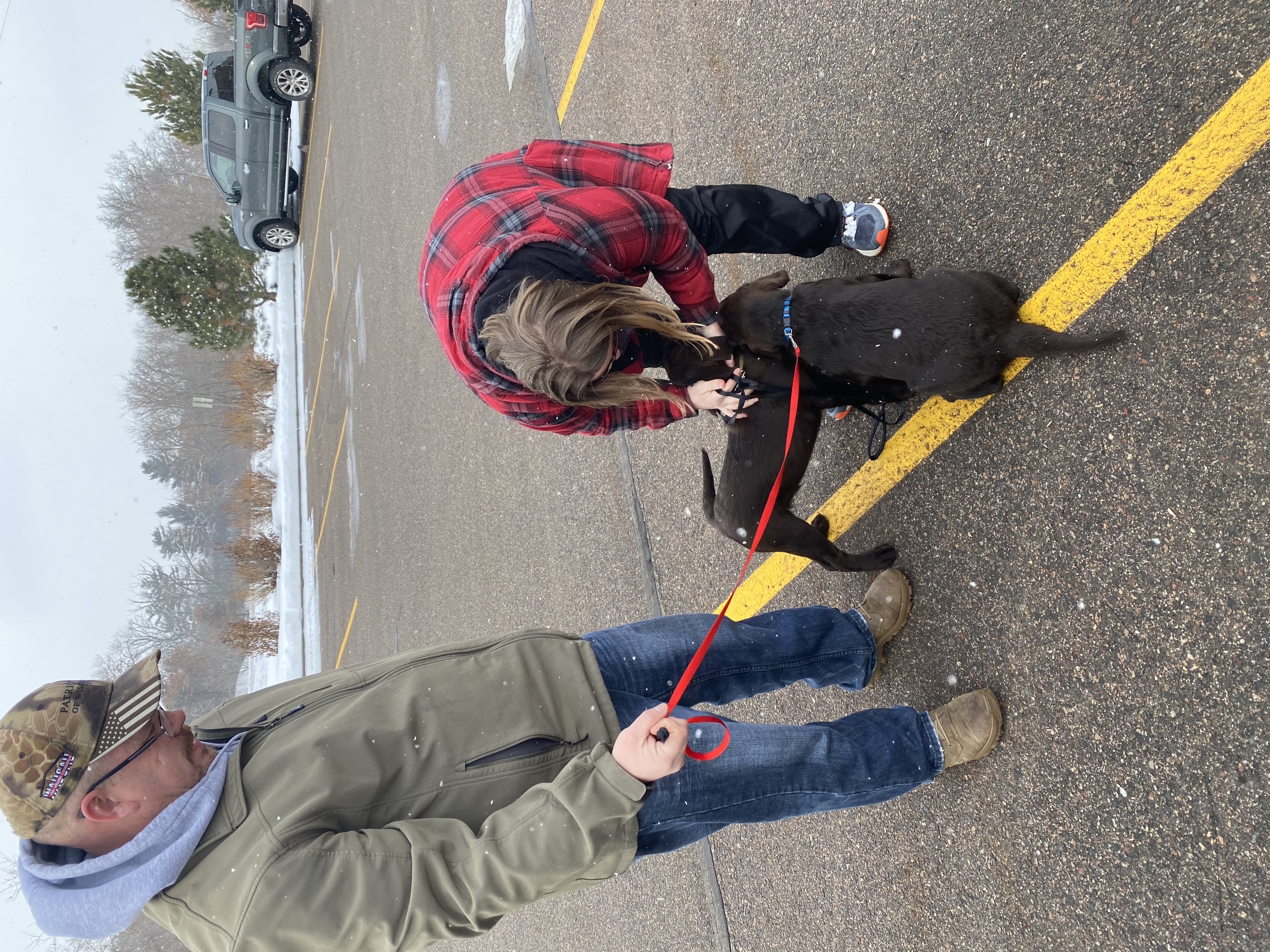 Snowing lightly for the past 2 days. Fairly warm so the pups have been