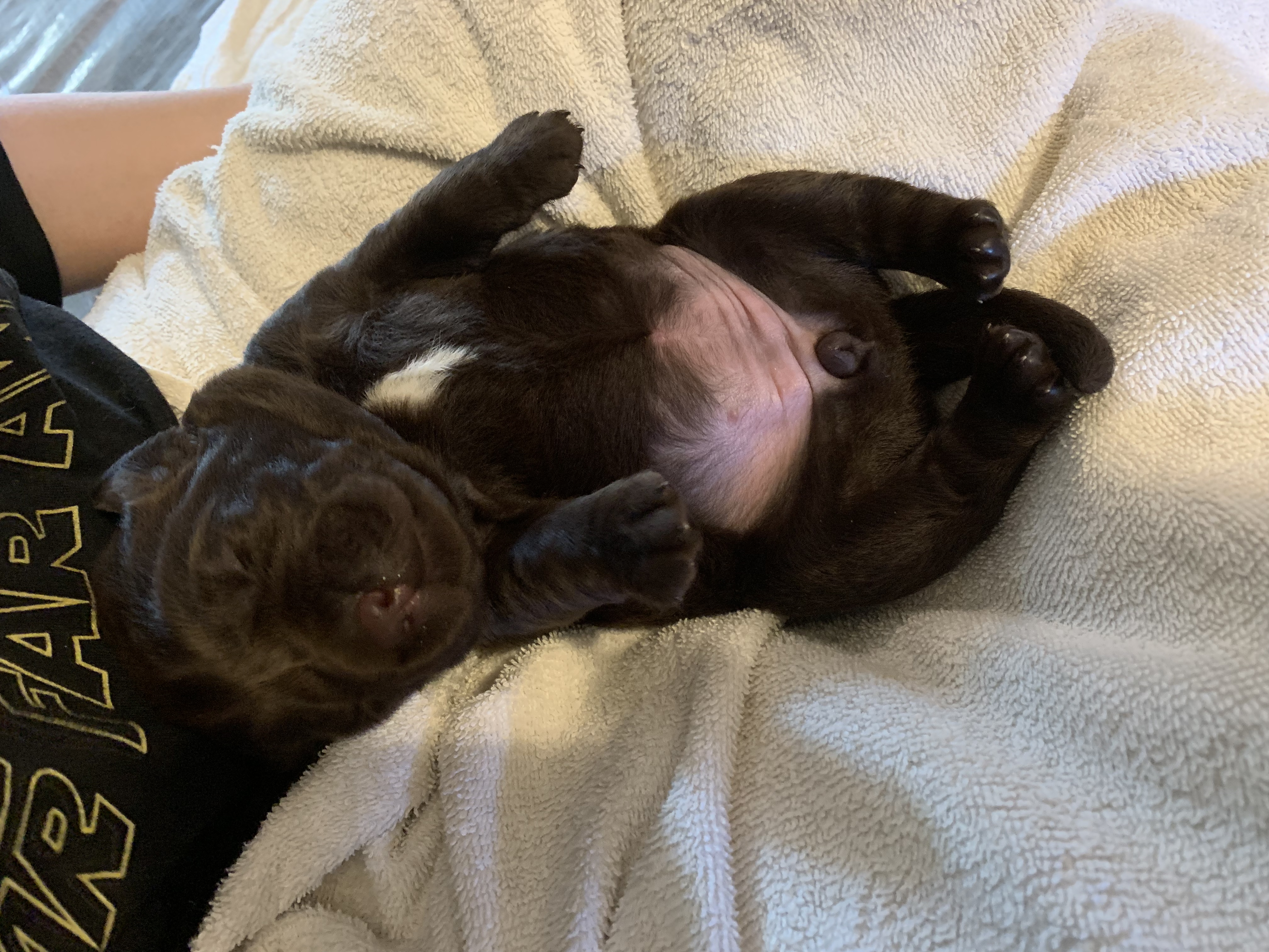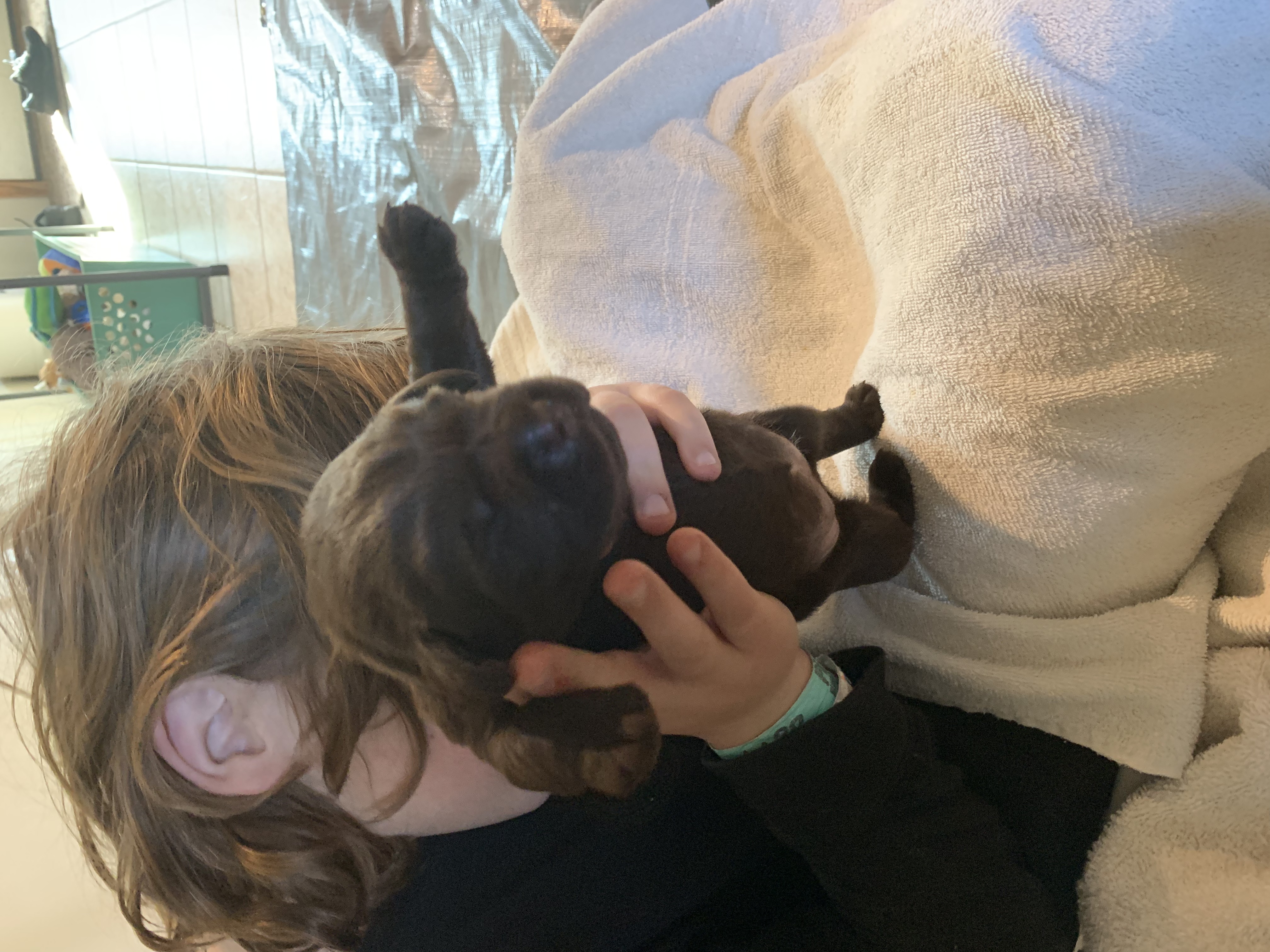 Fun day with the pups. Most can see a bit and are interacting with each other and with me.