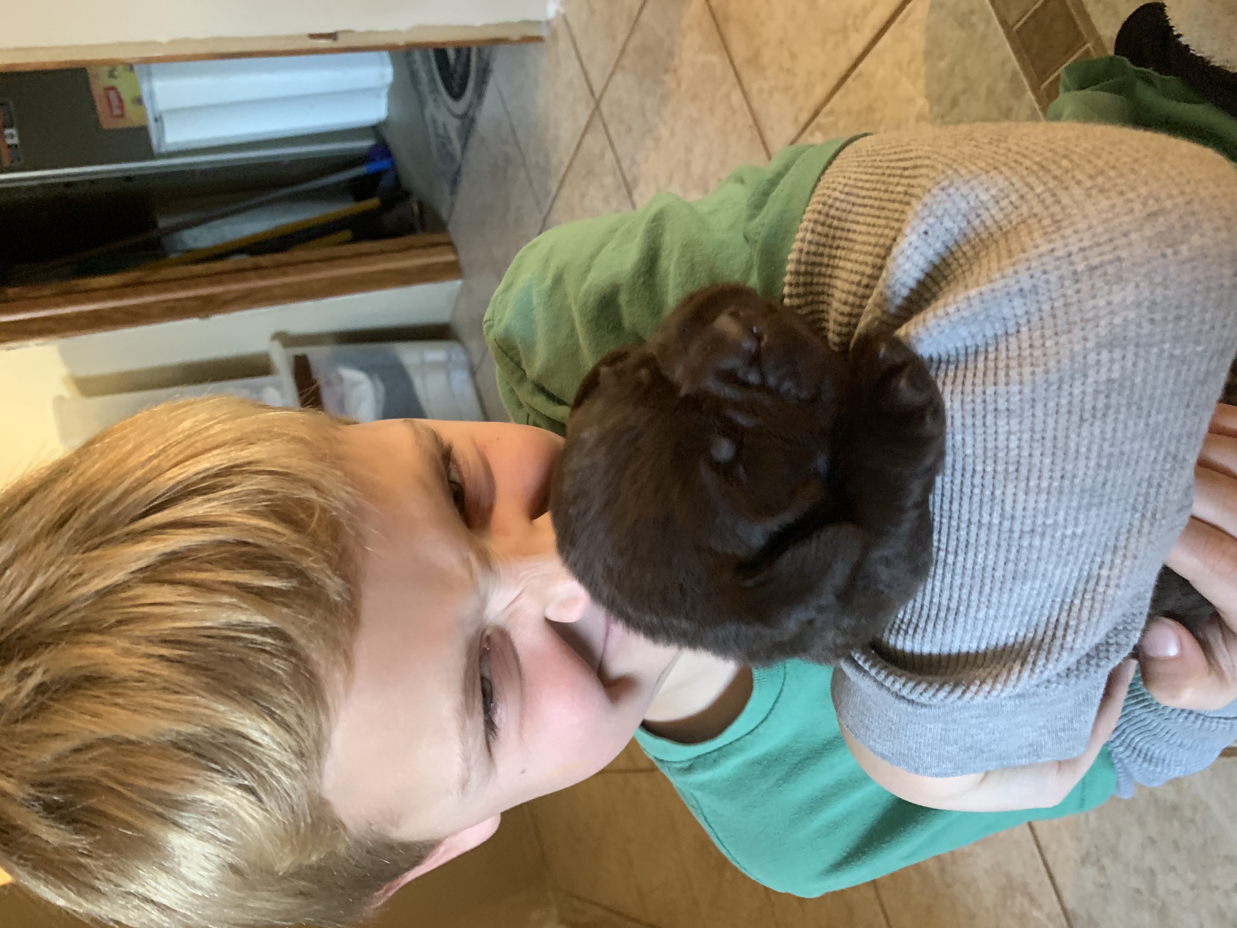 Mr Lime snuggled in my arm .