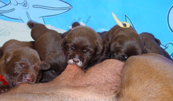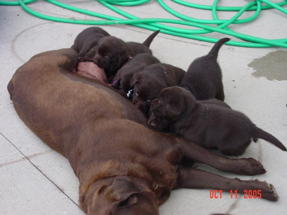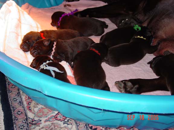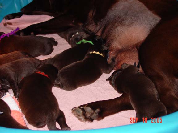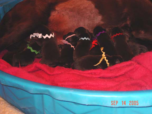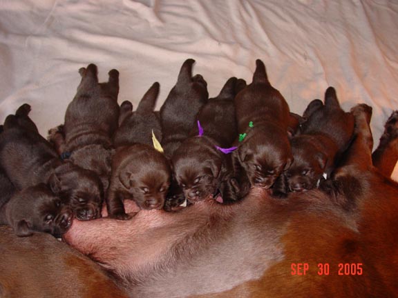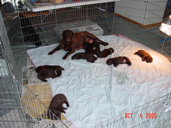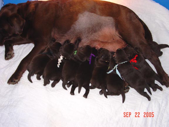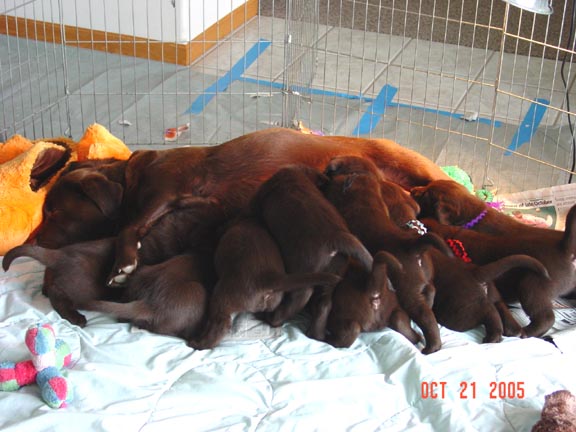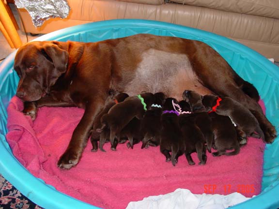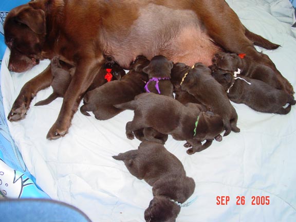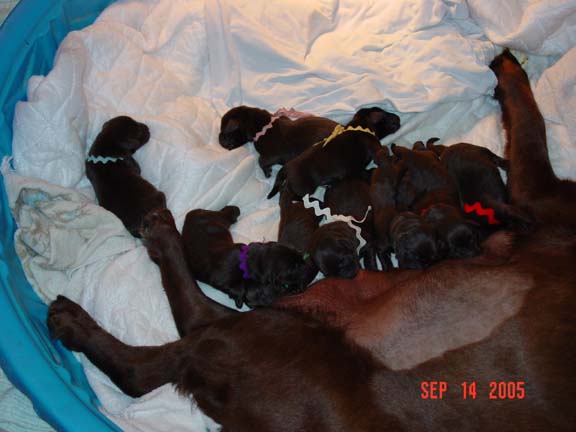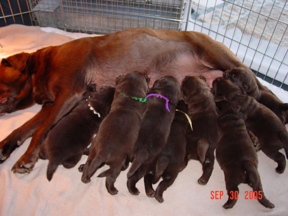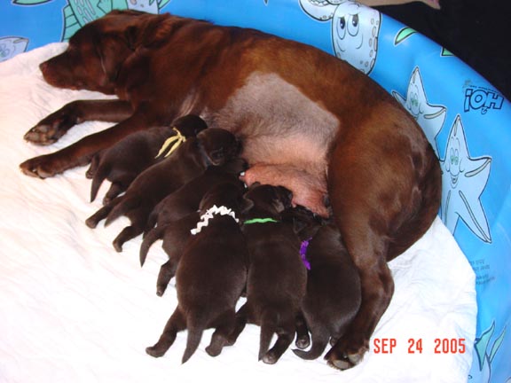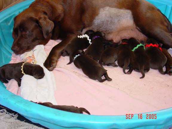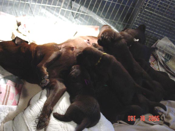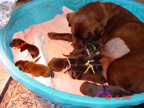 pups coming. Thank goodness a C-section was not necessary. There are 9 in all,
