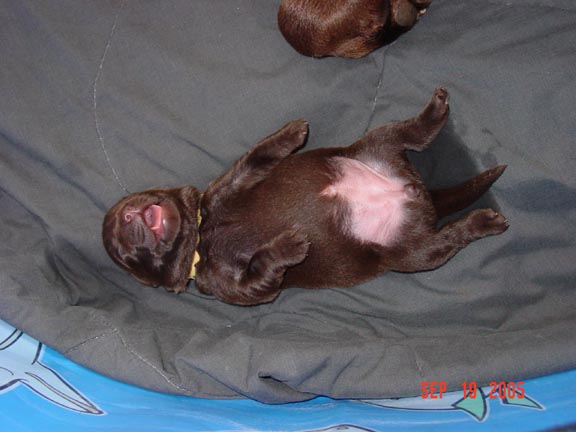 of his eyes open, the rest of the pups don't have any open sections. Red boy