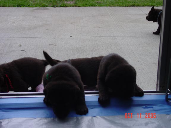their area, seems like one pup started it and they all joined in. Brown's eyes