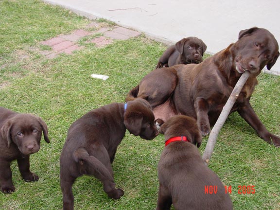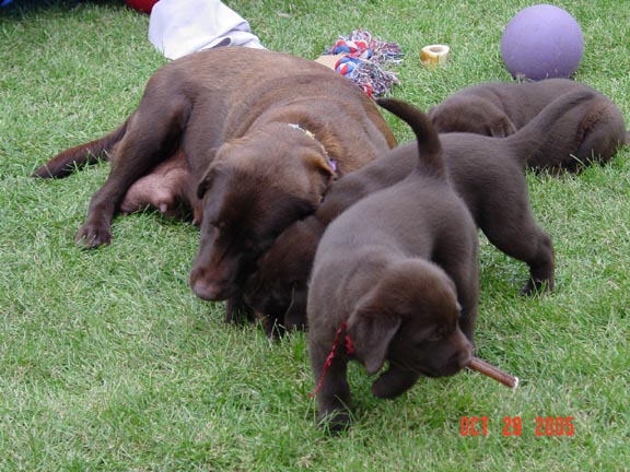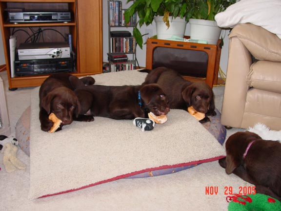 shots. Red is now 22lbs, the rest are 20lbs. They do like to chew raw hides.